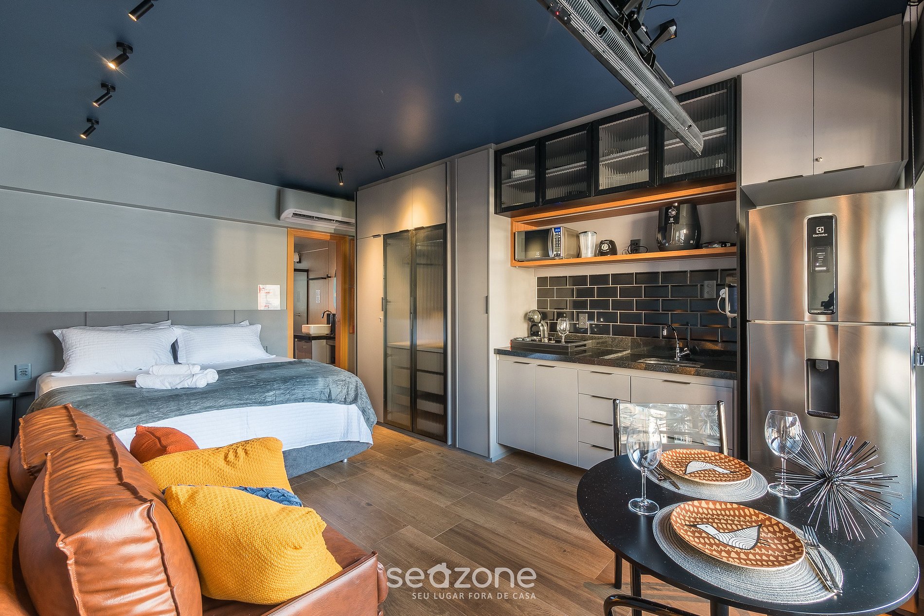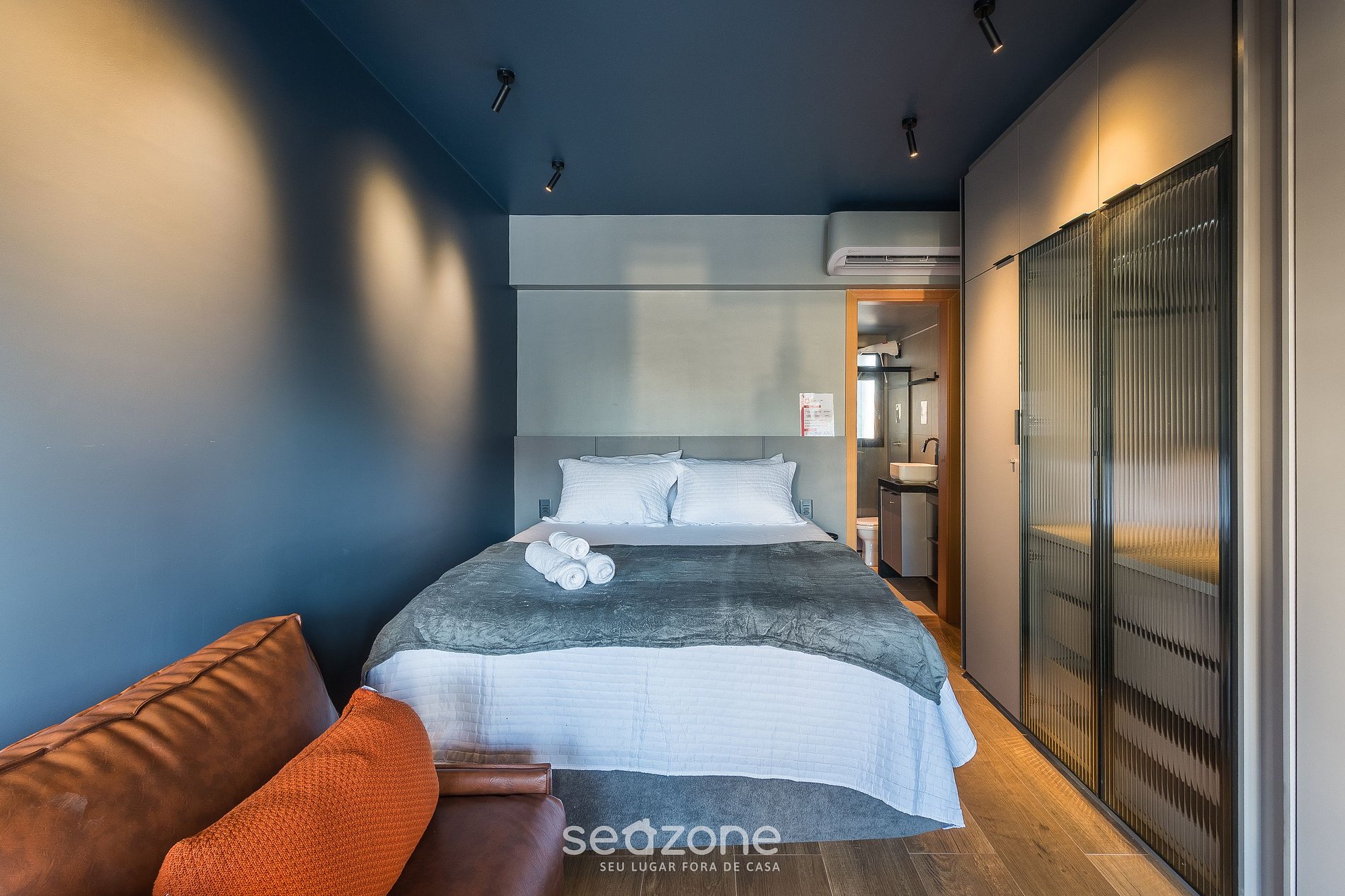 - Cama Queen, sofá, armário, Smart TV e ar-condicionado;