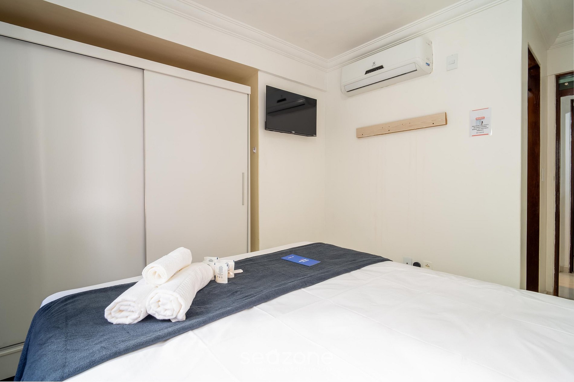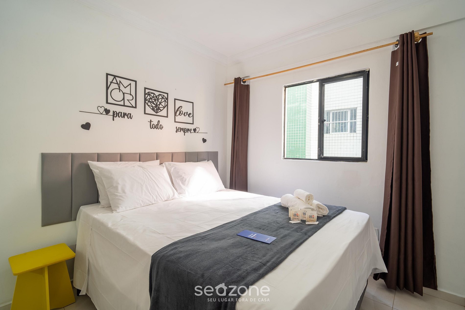 - Roupas de cama e banho de qualidade hoteleira (roupas de cama e toalhas extras são cobrados pela Seazone);