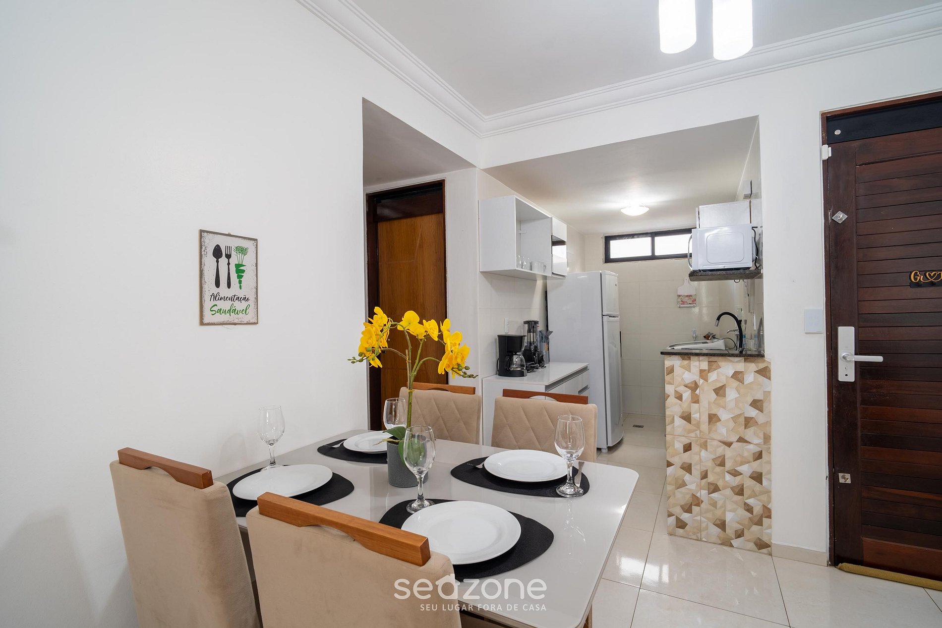 - Espaço para jantar com mesa e cadeiras;