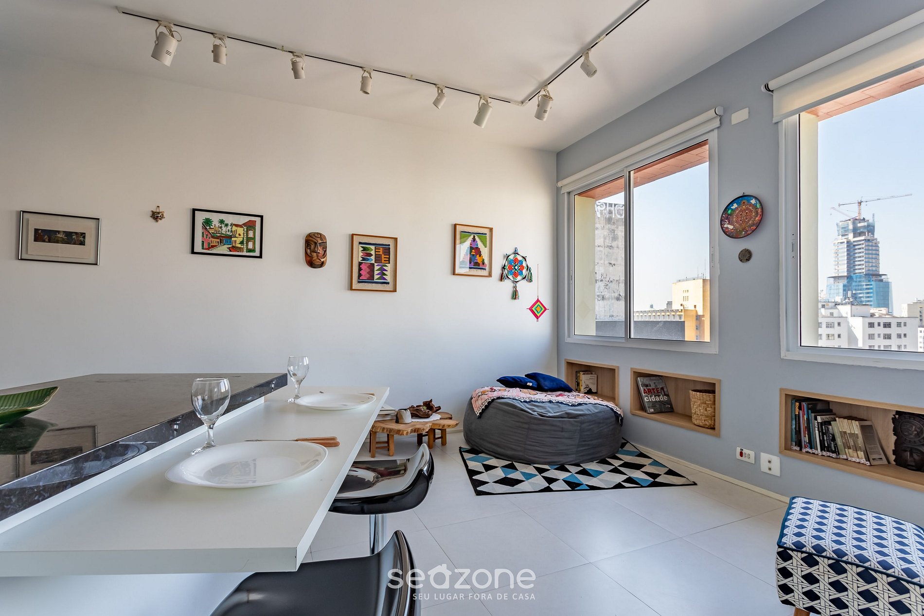Localizado no coração de São Paulo, este apartamento é ideal para quem valoriza praticidade e conforto. Com uma vista incrível para o emblemático prédio Artacho Jurado e situado próximo ao Copan, o apartamento fica a 400m da estação de metrô Anhangabaú, assim você estará no centro da vibrante vida paulistana. O espaço oferece uma mesa de trabalho junto à janela e internet de fibra ótica, perfeita para home office e videoconferências.