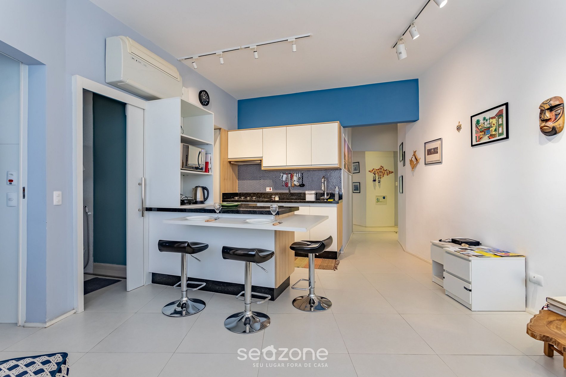 - Espaço para jantar com bancada e 3 banquetas;