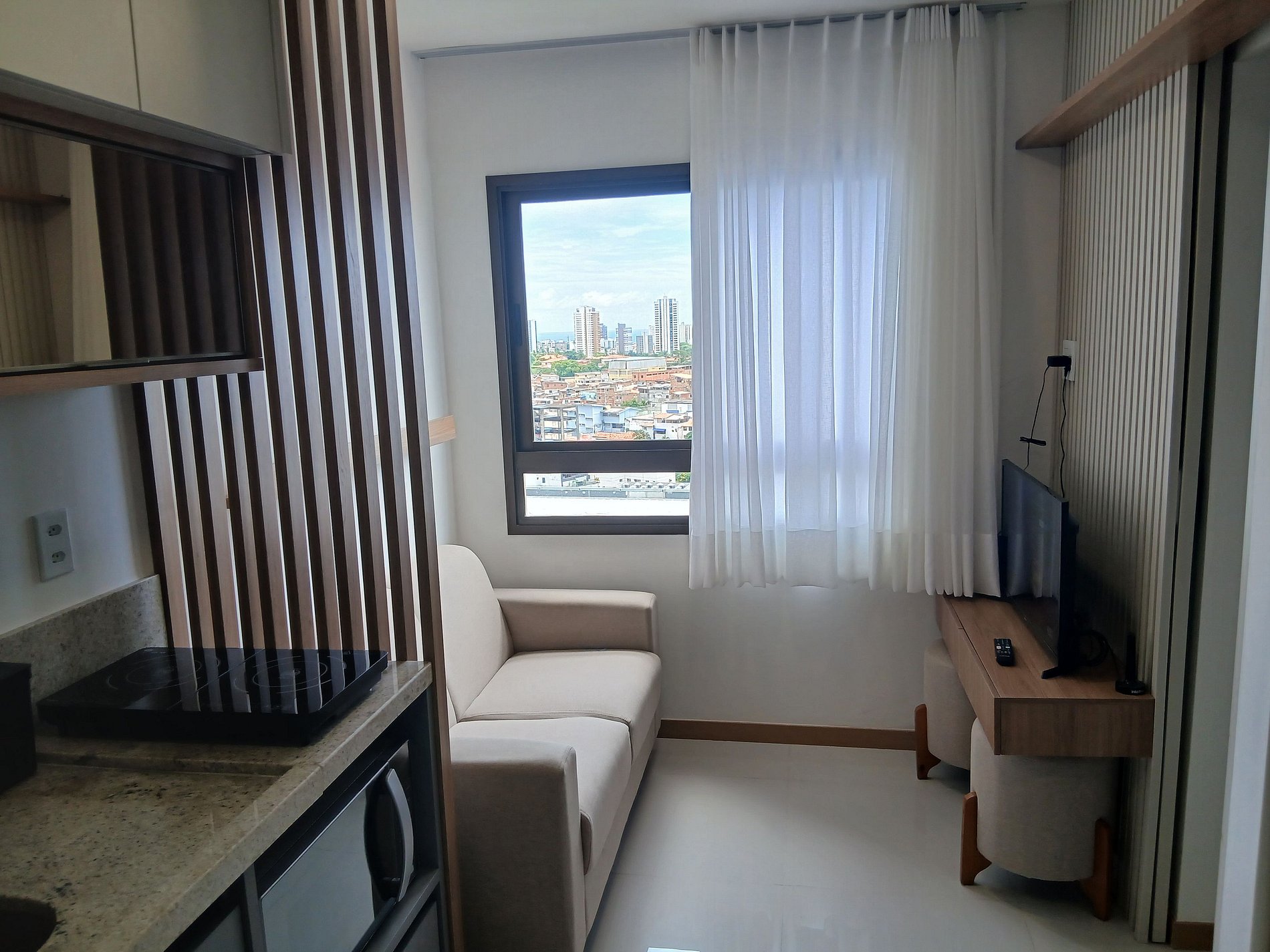 As acomodações contam com ambientes bem distribuídos e equipados, ideais para uma estadia funcional e agradável. A estrutura inclui áreas compartilhadas que favorecem trabalho, lazer e bem-estar, em uma região estratégica, com fácil acesso à praia, opções gastronômicas e polos culturais da cidade.