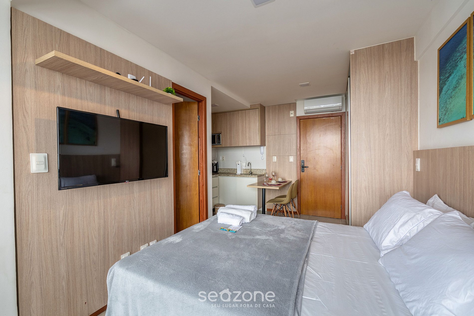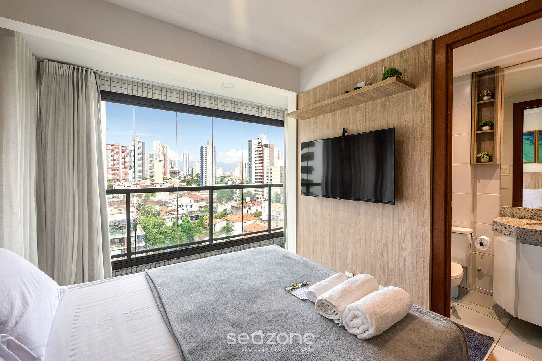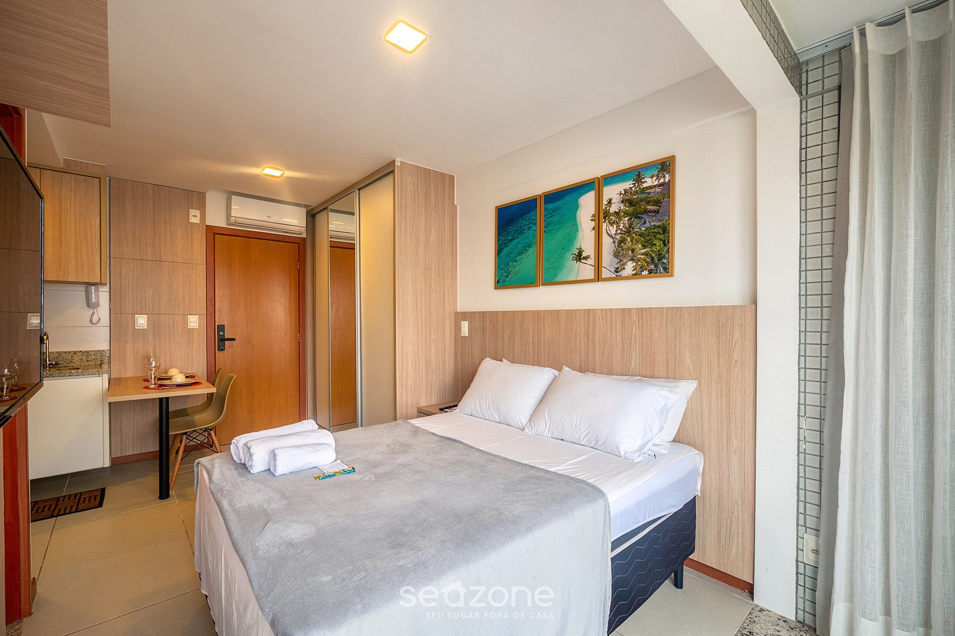 - Roupas de cama e banho de qualidade hoteleira (roupas de cama e toalhas extras são cobrados pela Seazone);