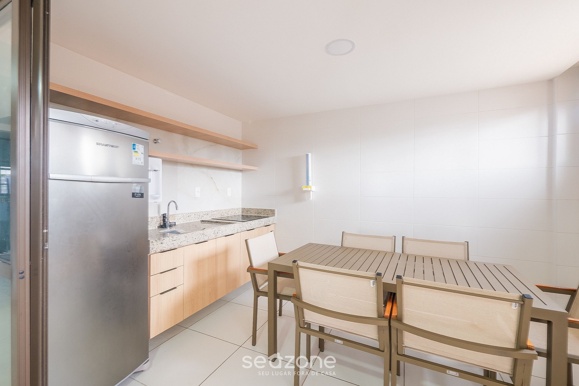 - Espaço para jantar com mesa e cadeiras;