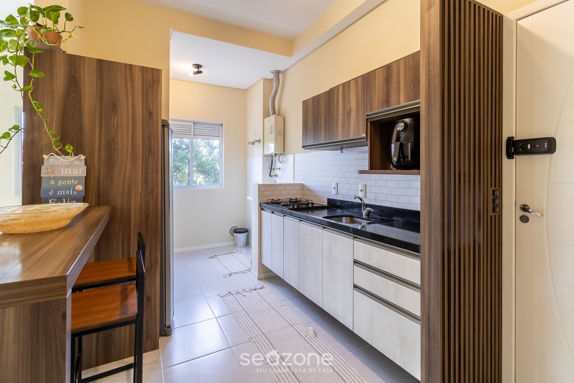 - Cozinha completa com geladeira, fogão cooktop, sanduicheira, kit café, chaleira, liquidificador, airfryer, taças de vinho, panelas, louças e utensílios;