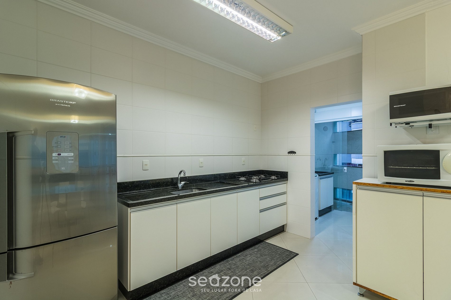 - Cozinha completa com geladeira, fogão cooktop (gás), forno elétrico, micro-ondas, sanduicheira, cafeteira elétrica, chaleira elétrica, liquidificador, panelas, louças e utensílios;