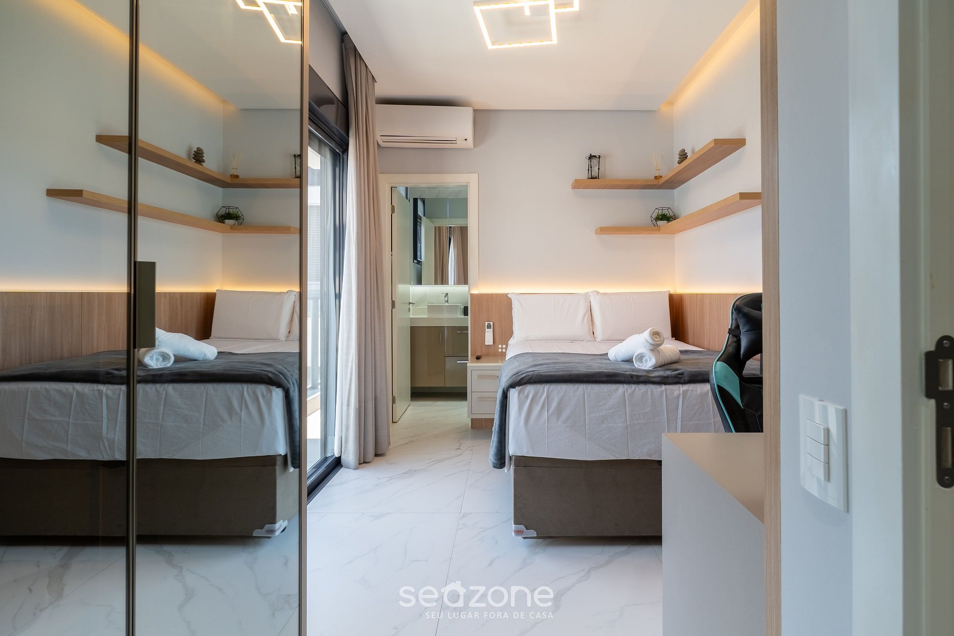 - Roupas de cama e banho de qualidade hoteleira (roupas de cama e toalhas extras são cobrados pela Seazone);