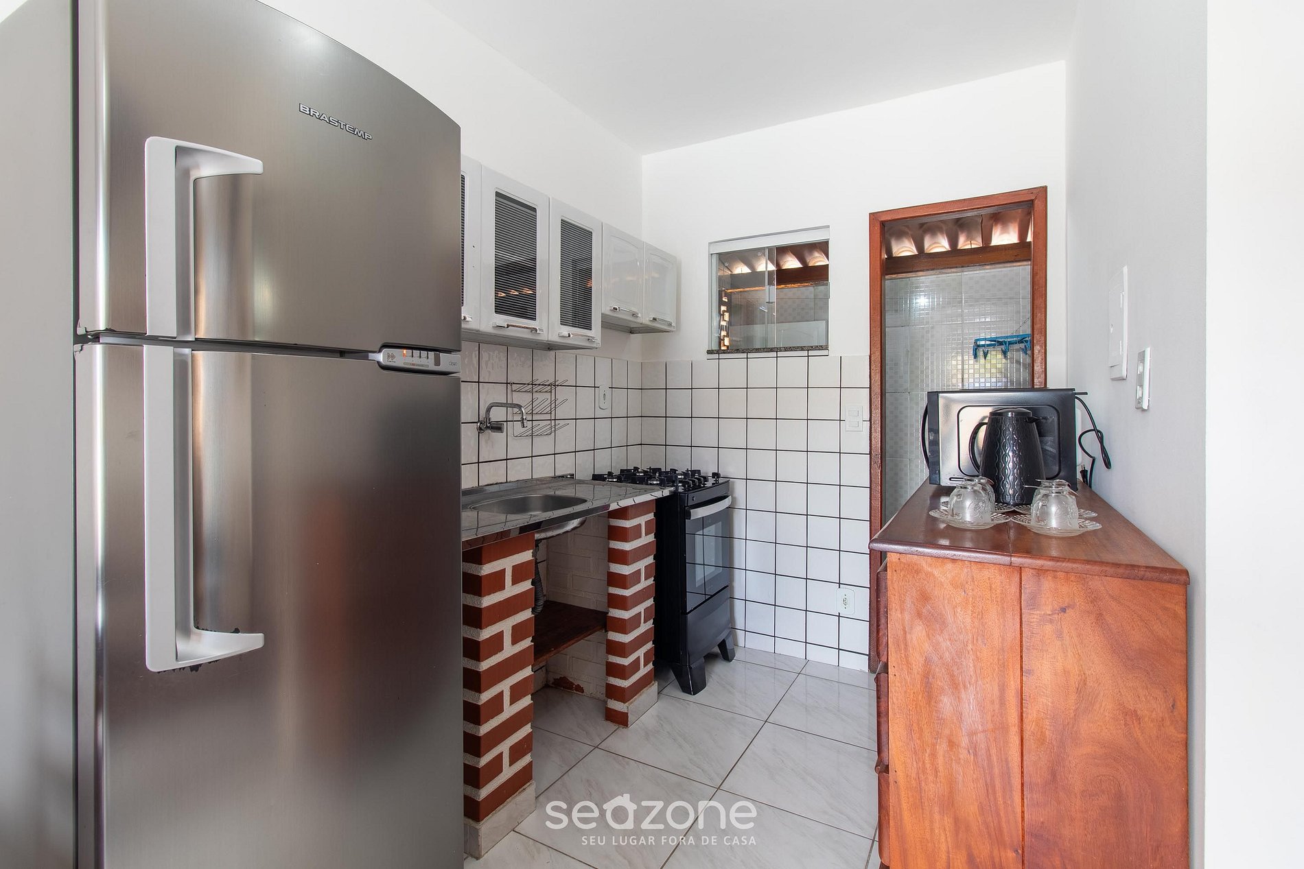 - Cozinha completa com geladeira, fogão e forno a gás, micro-ondas, sanduicheira, kit café (suporte para filtro, garrafa térmica), chaleira, liquidificador, taças de vinho, panelas, louças e utensílios;