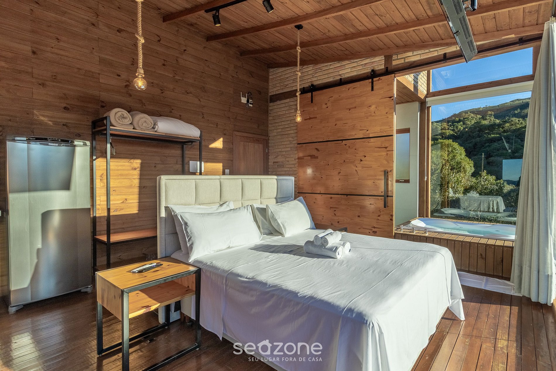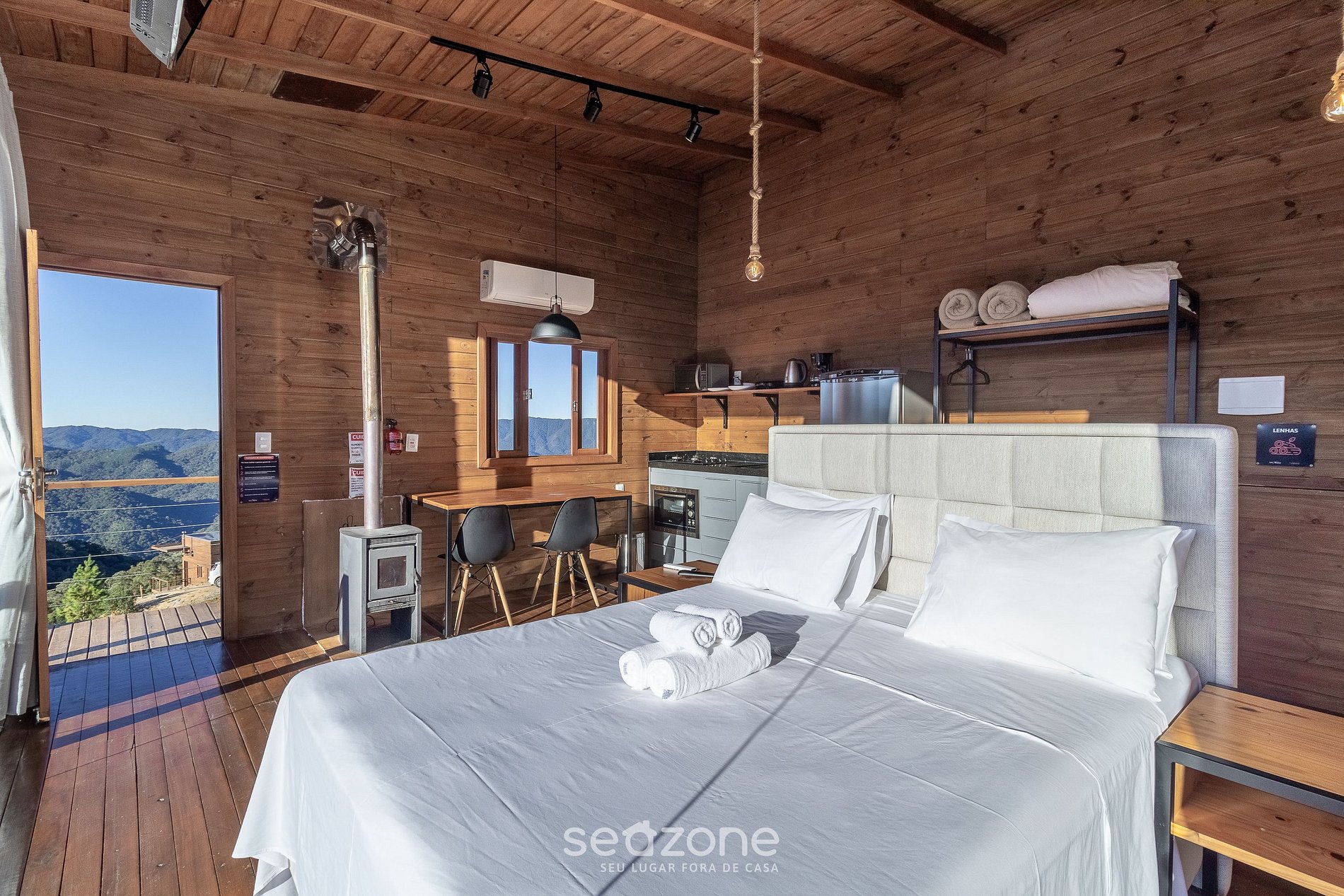 Unindo o rústico ao sofisticado, essa cabana é o ambiente ideal para uma hospedagem de luxo em meio a natureza. Além de aconchegante, oferece uma vista deslumbrante das montanhas, perfeita para aproveitar dias românticos a dois.