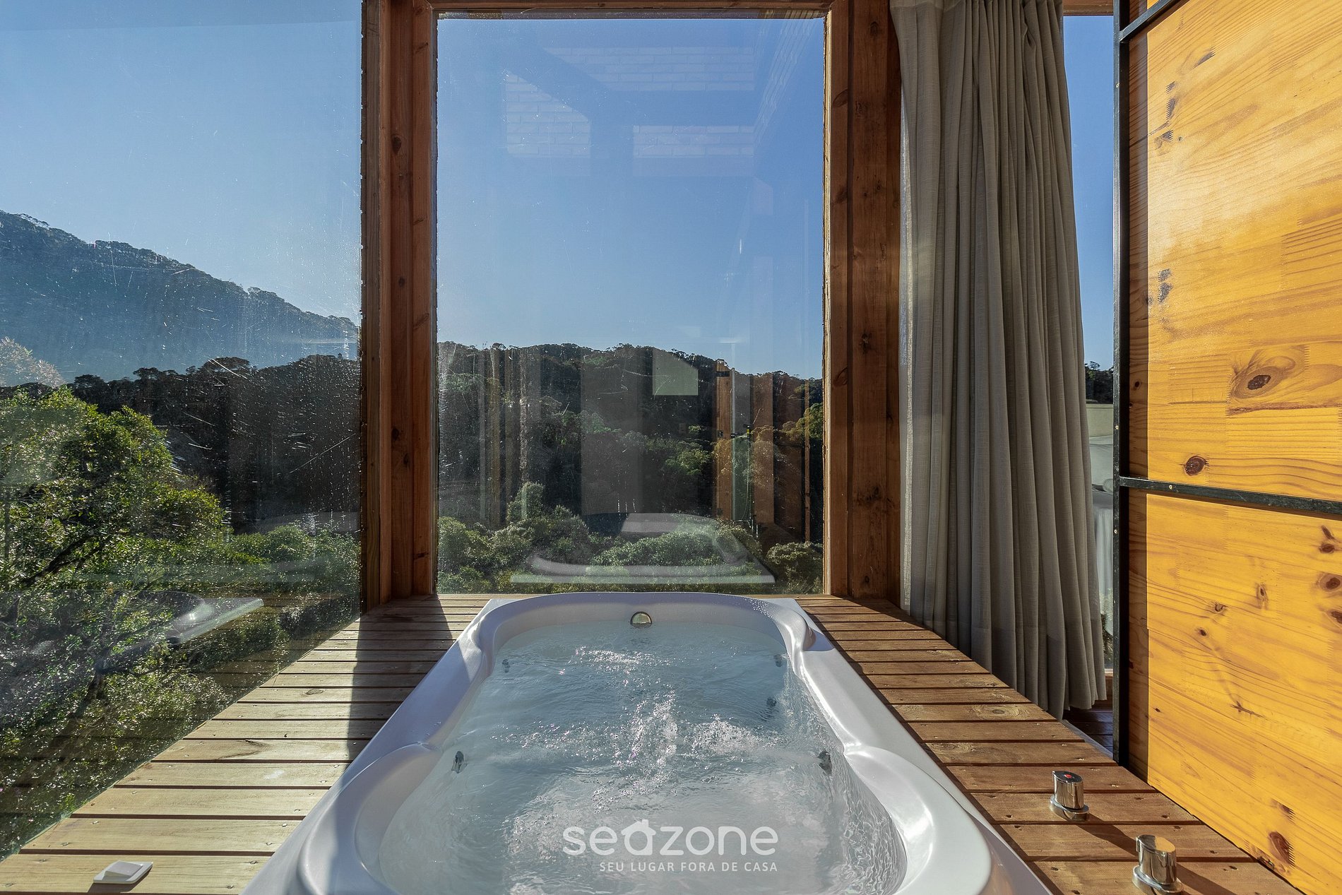 - Jacuzzi particular com hidromassagem e teto de vidro e janelas panorâmicas;