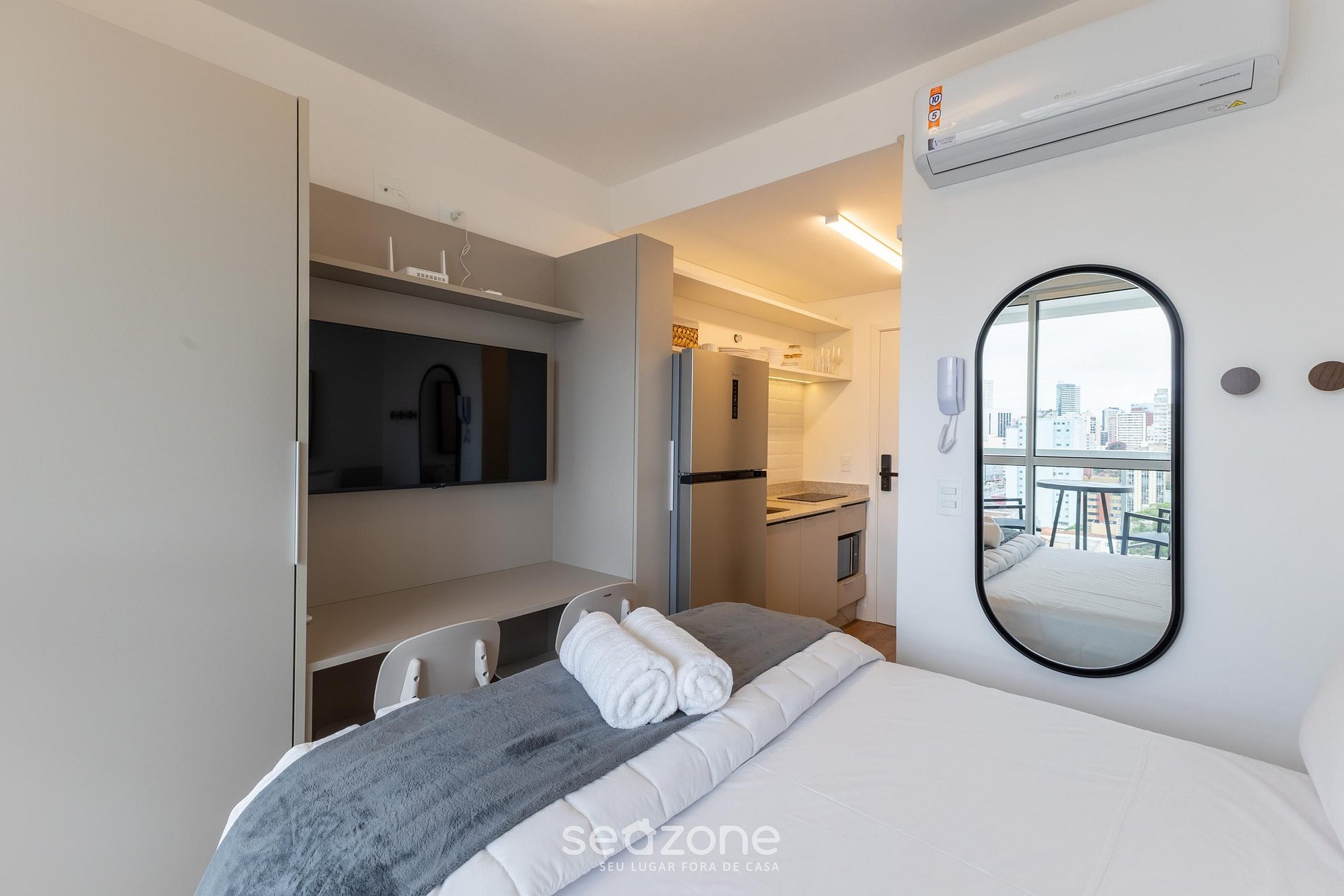 - Roupas de cama e banho de qualidade hoteleira (roupas de cama e toalhas extras são cobrados pela Seazone);