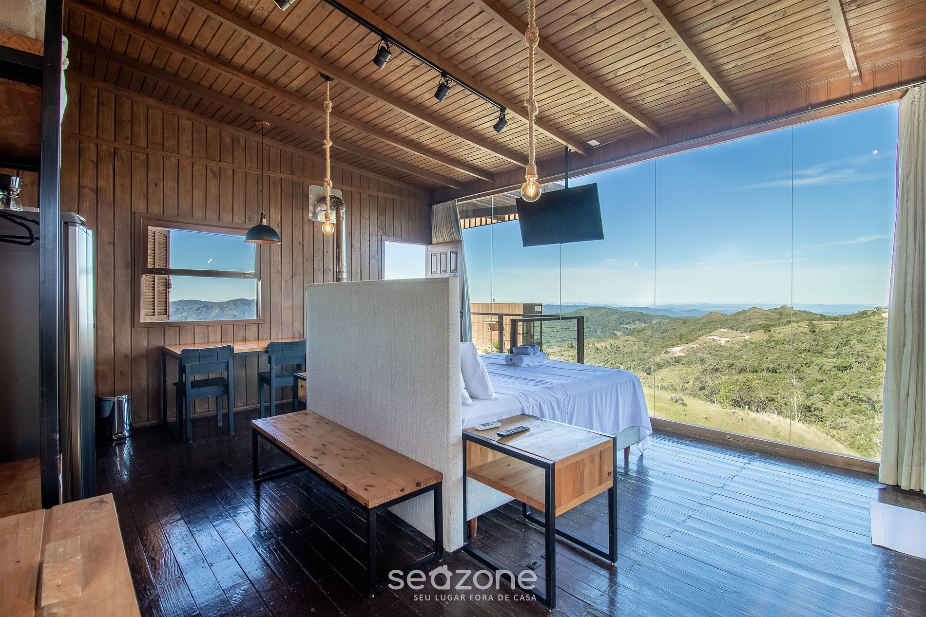 Unindo o rústico ao sofisticado, essa cabana é o ambiente ideal para uma hospedagem de luxo em meio a natureza. Além de aconchegante, oferece uma vista deslumbrante das montanhas, perfeita para aproveitar dias românticos a dois.