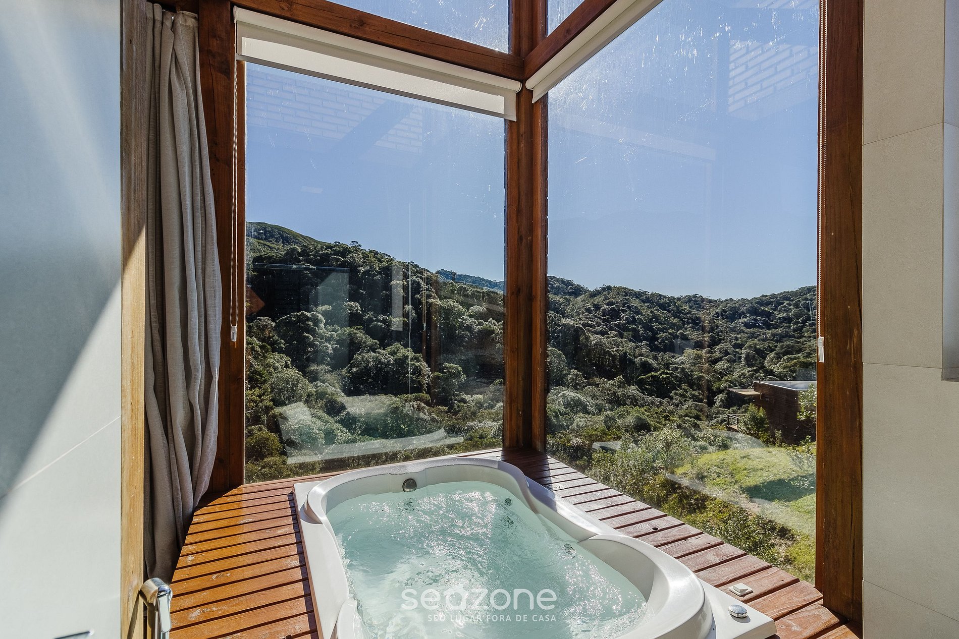 - Jacuzzi particular com hidromassagem e teto de vidro e janelas panorâmicas;