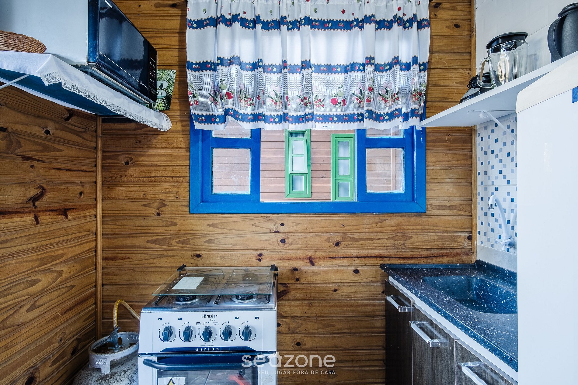 - Cozinha completa com geladeira, fogão, microondas, sanduicheira, chaleira elétrica, liquidificador, panelas, louças e utensílios;