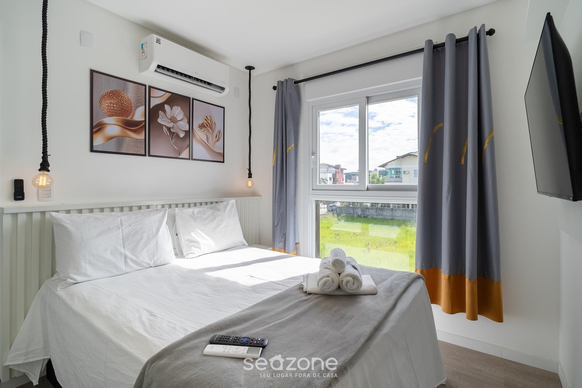 - Roupas de cama e banho de qualidade hoteleira (roupas de cama e toalhas extras são cobrados pela Seazone);
