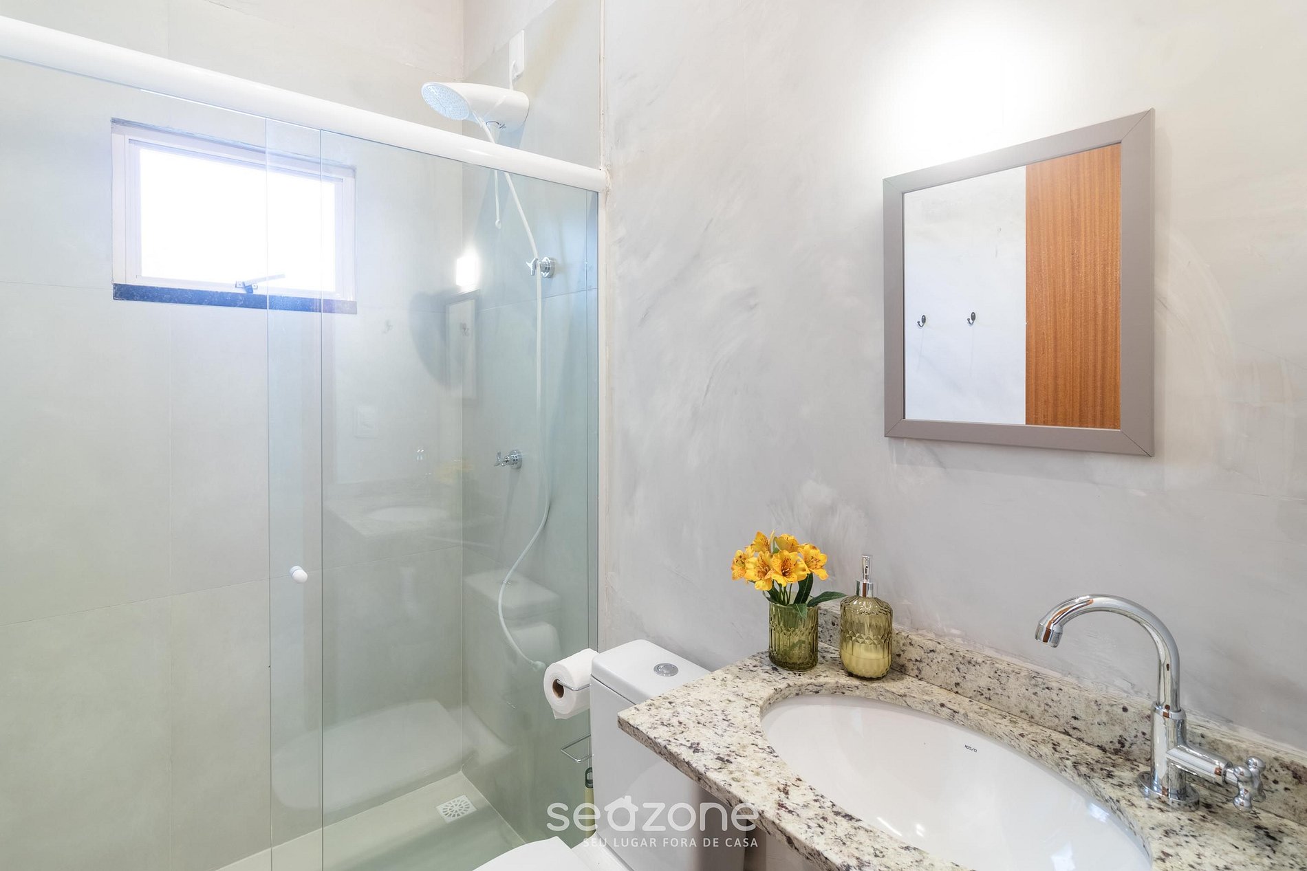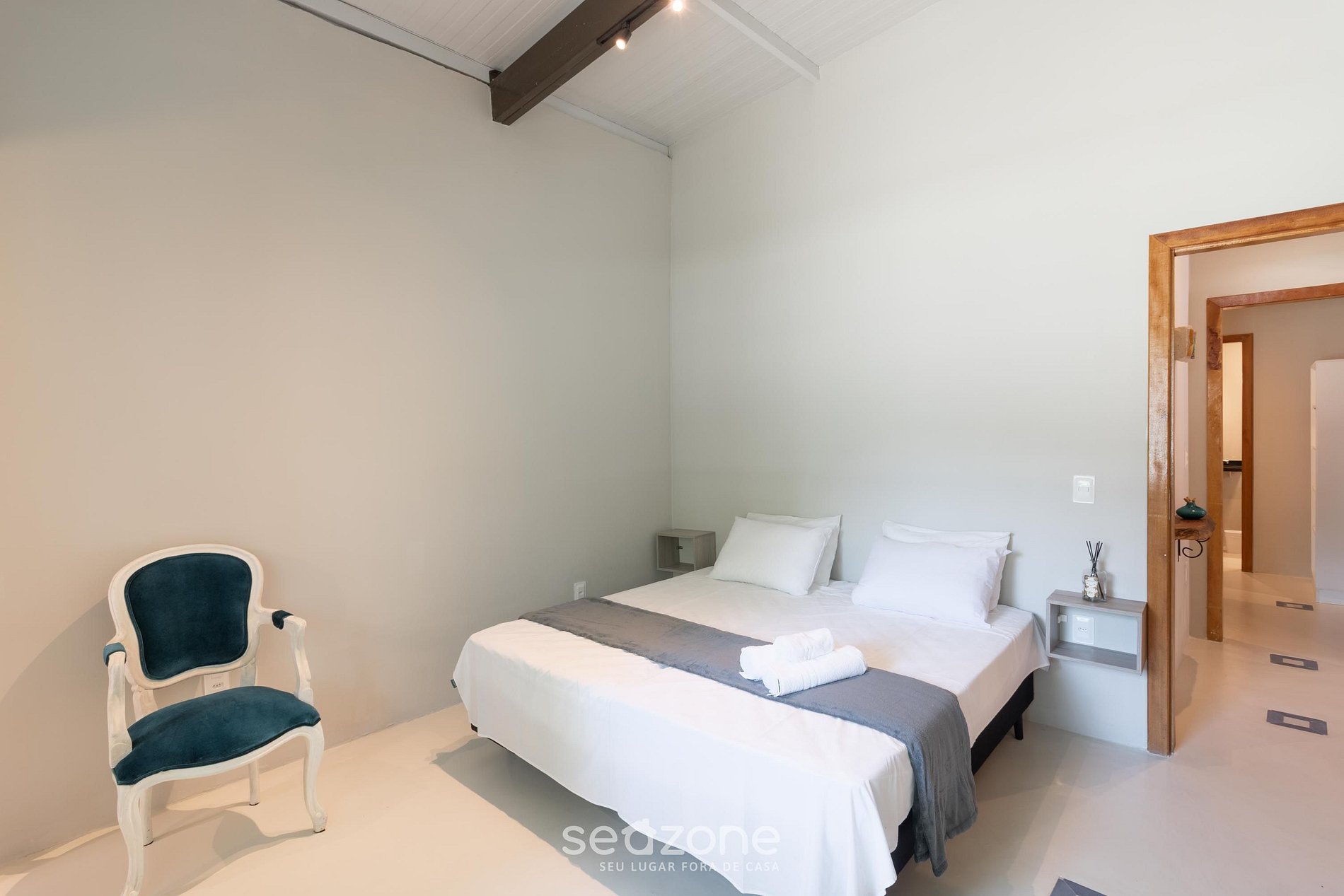 - 1 Suíte com cama Queen, arara para roupas e ar-condicionado;