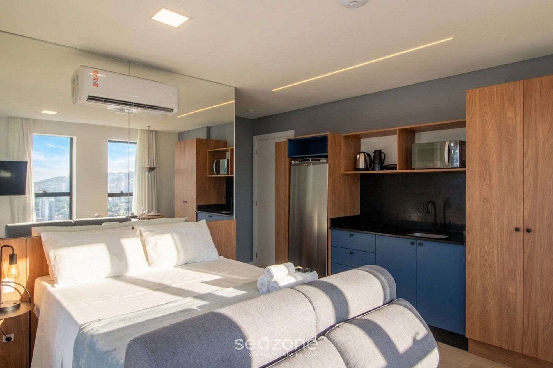 - Roupas de cama e banho de qualidade hoteleira (roupas de cama e toalhas extras são cobrados pela Seazone);