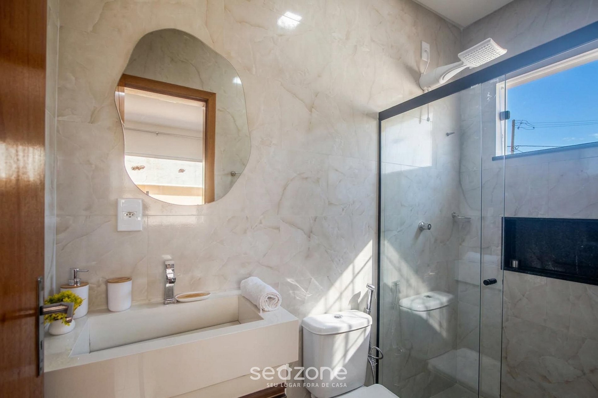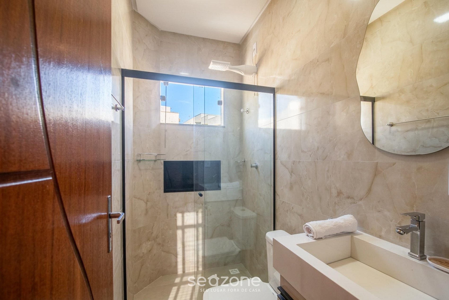 - Roupas de cama/banho e limpeza extras são solicitadas e pagas à parte, direto com a Seazone;