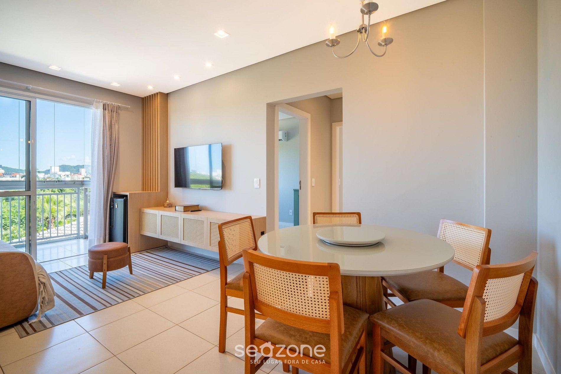 - Espaço para jantar com mesa e cadeiras;