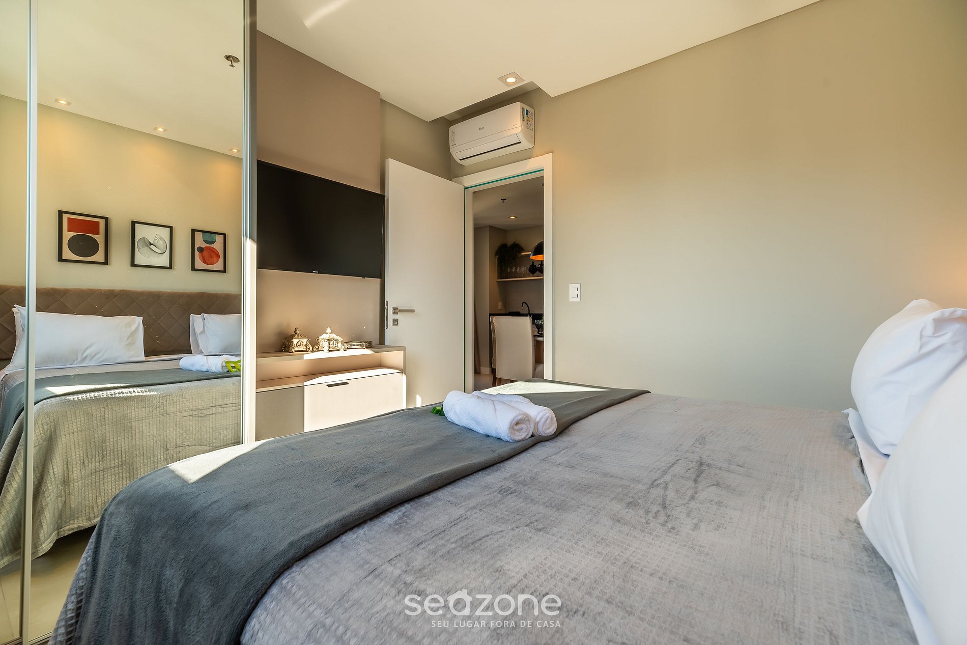 - Roupas de cama e banho de qualidade hoteleira (roupas de cama e toalhas extras são cobrados pela Seazone);