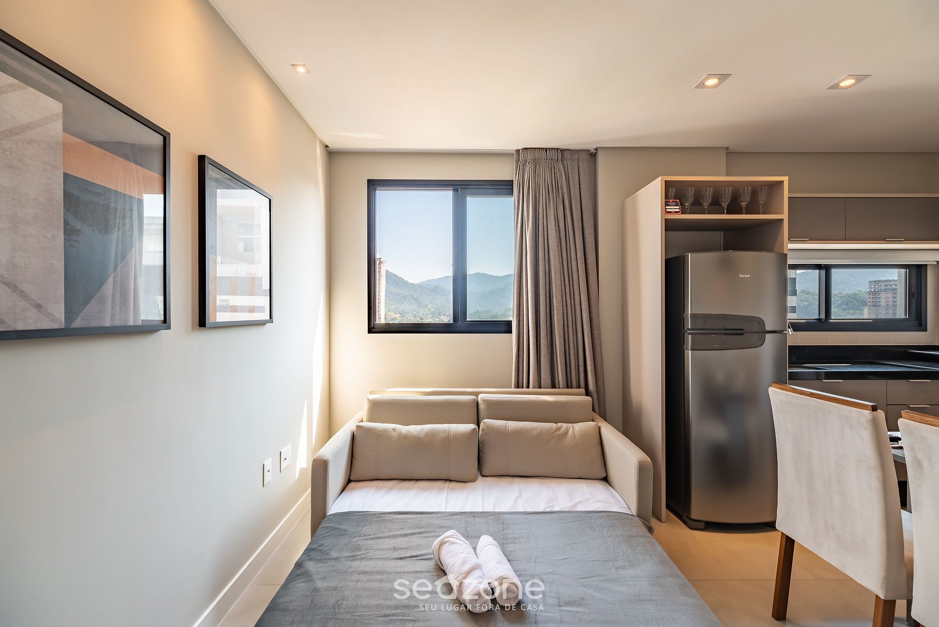 - Roupas de cama e banho de qualidade hoteleira (roupas de cama e toalhas extras são cobrados pela Seazone);