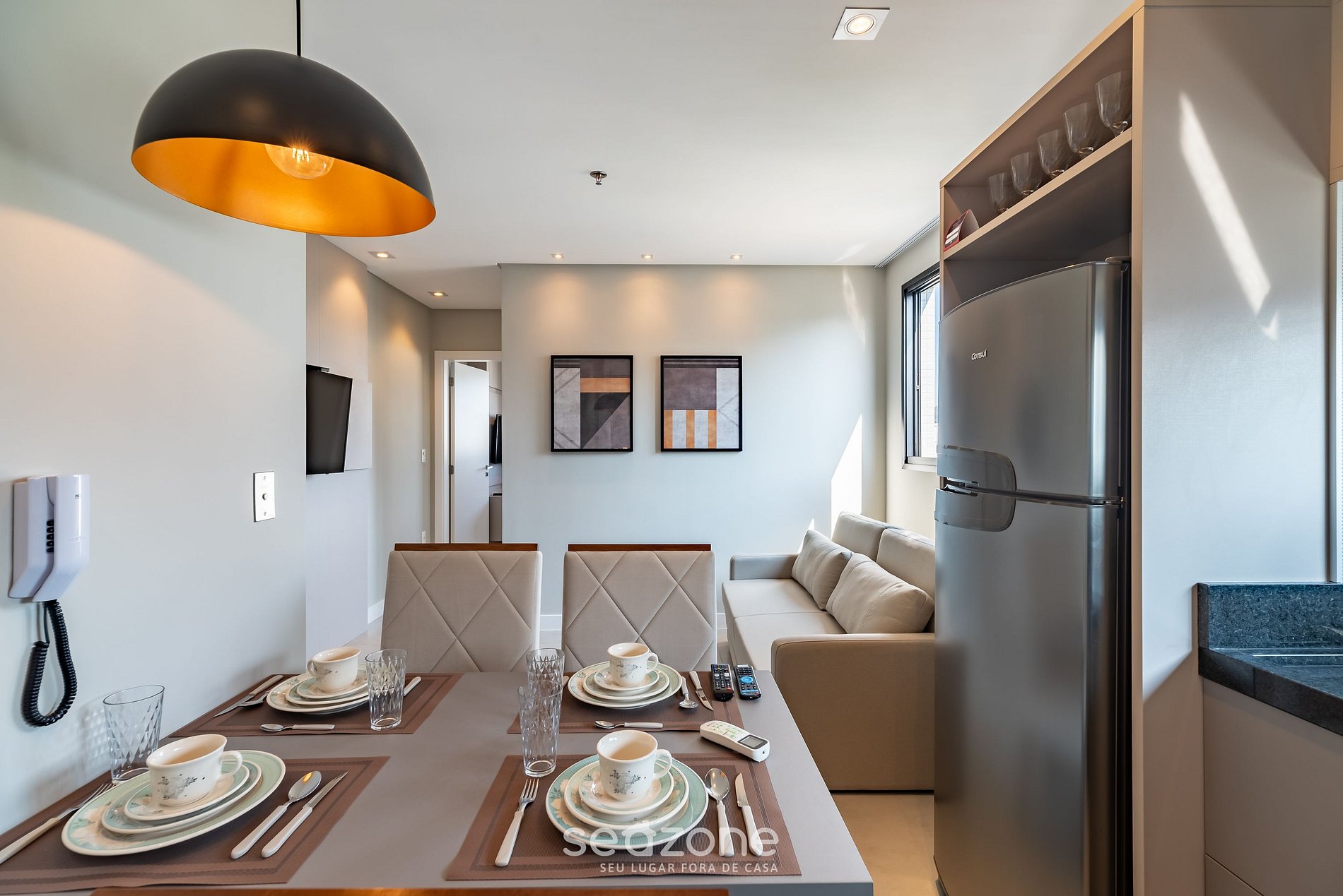 - Espaço para jantar com mesa e 4 cadeiras;