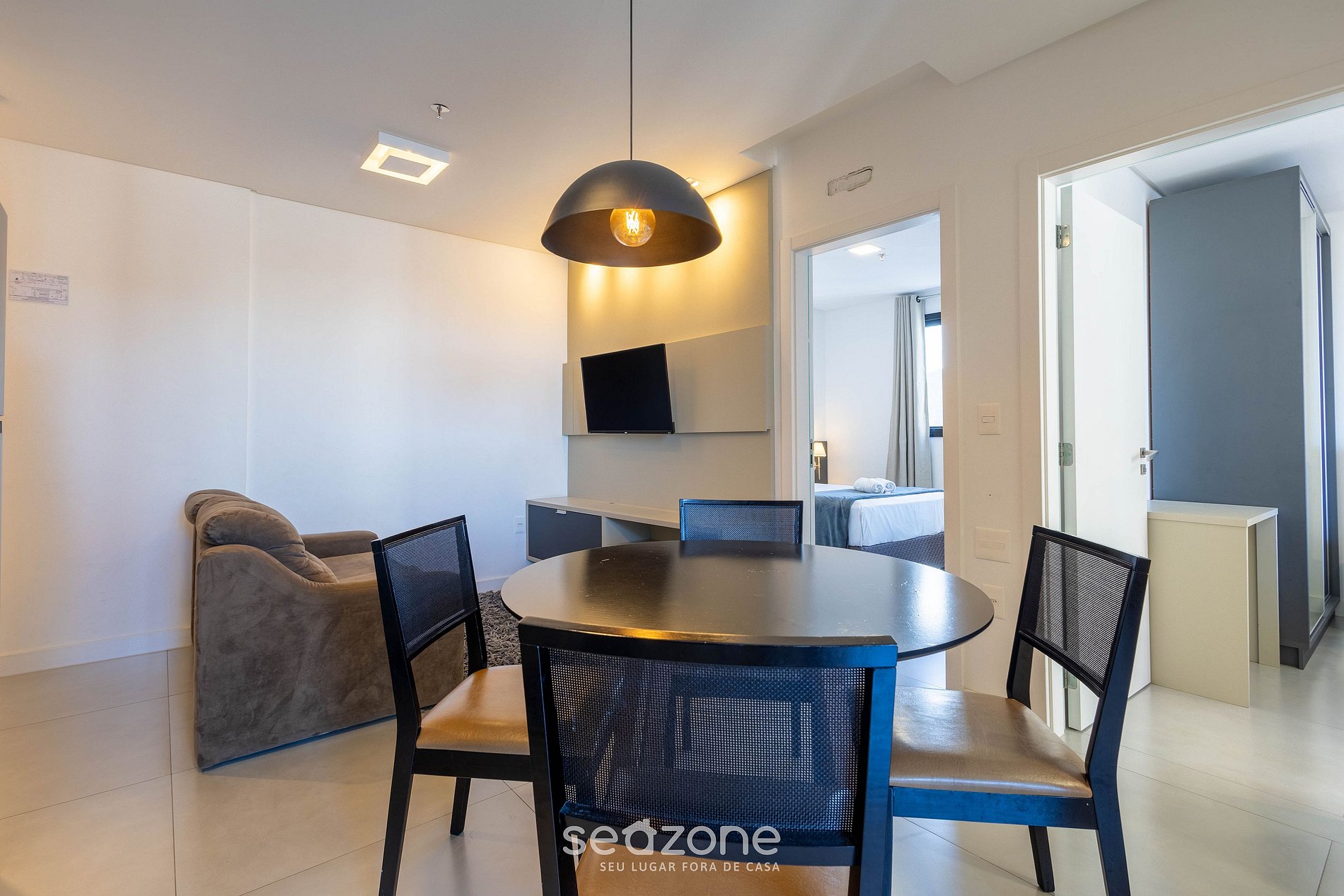 - Espaço para jantar com mesa e 4 cadeiras;