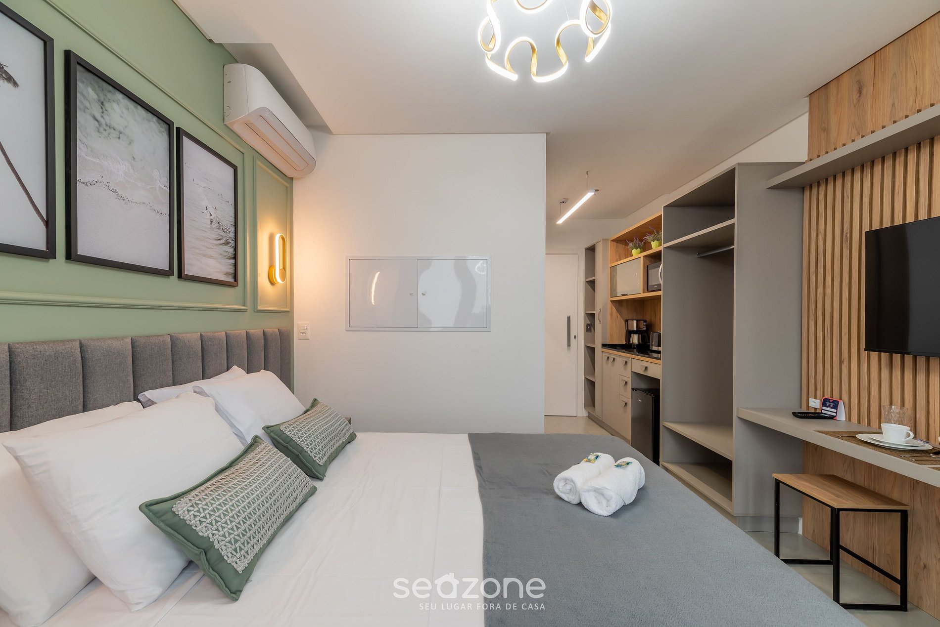 - Roupas de cama e banho de qualidade hoteleira (roupas de cama e toalhas extras são cobrados pela Seazone);