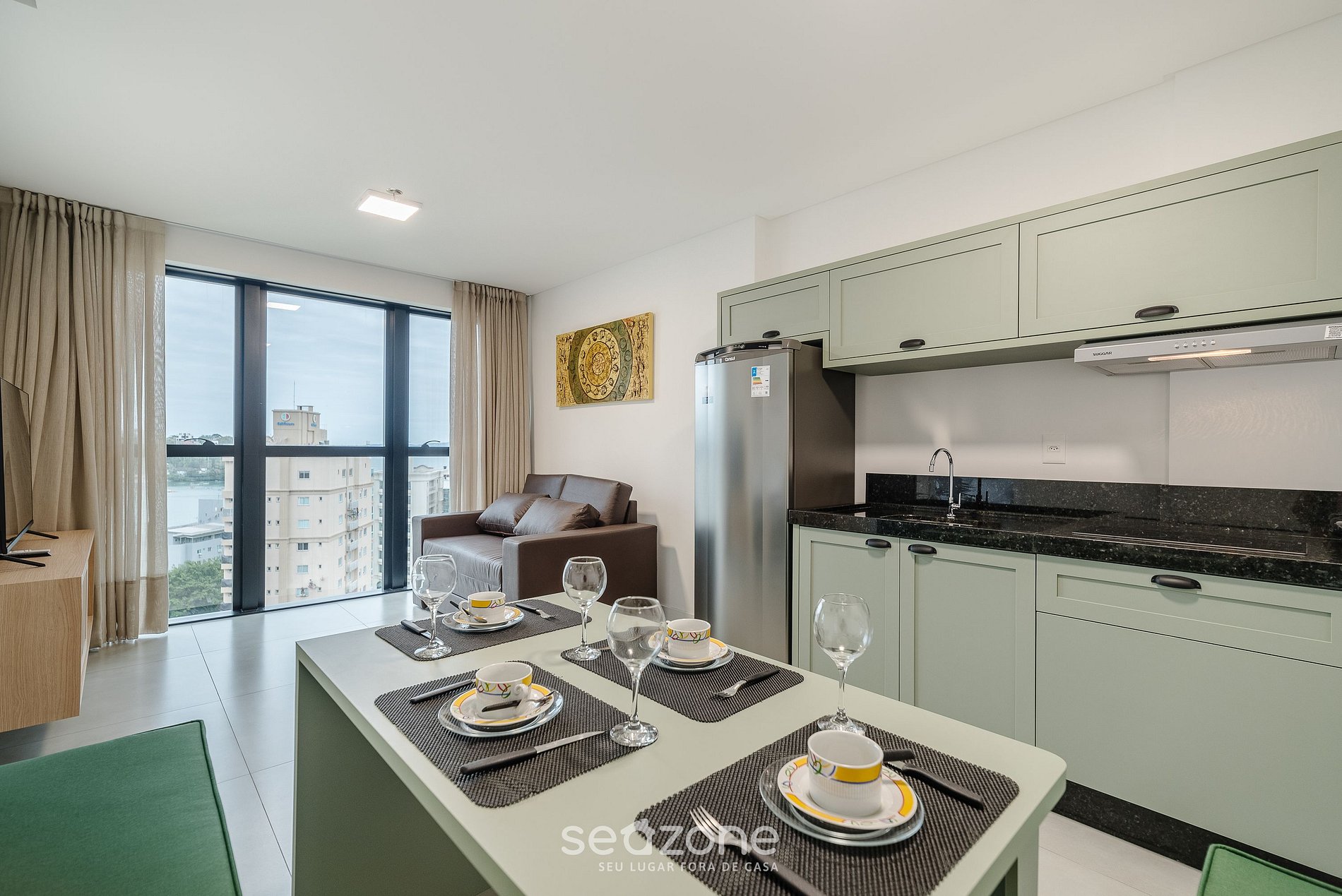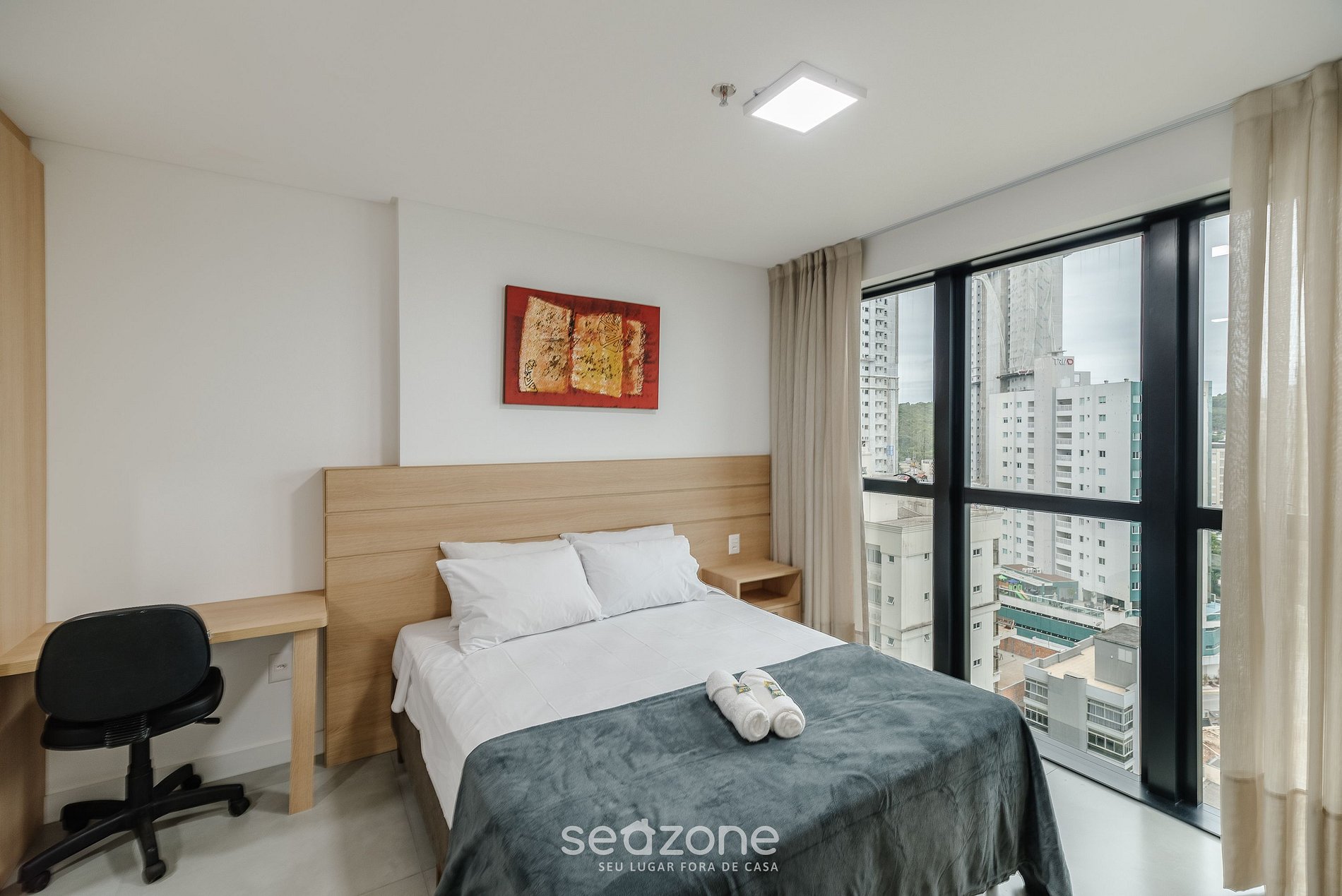 - Roupas de cama e banho de qualidade hoteleira (roupas de cama e toalhas extras são cobrados pela Seazone);