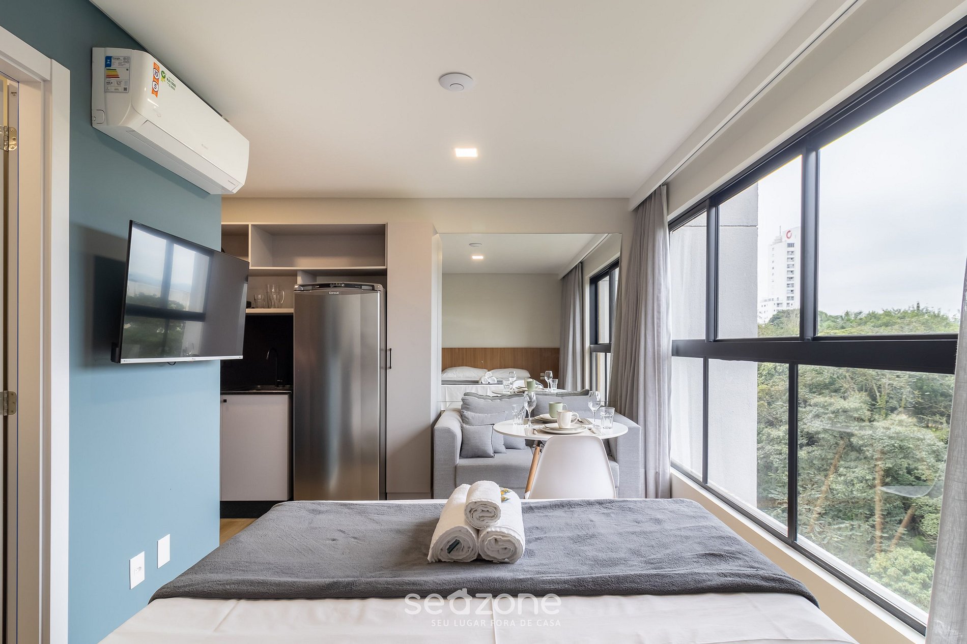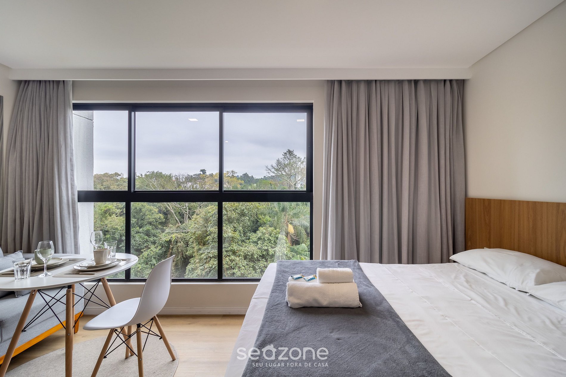 - Roupas de cama e banho de qualidade hoteleira (roupas de cama e toalhas extras são cobrados pela Seazone);