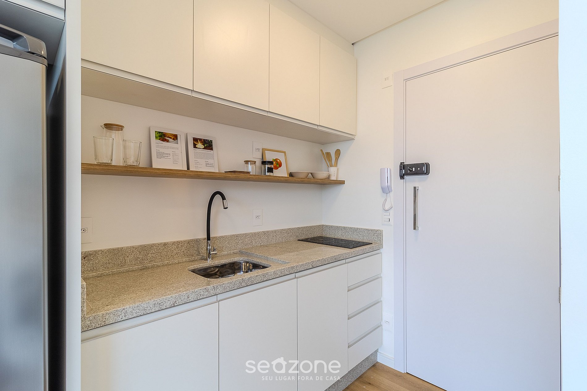- Cozinha completa com geladeira, cooktop por indução, micro-ondas, sanduicheira, cafeteira elétrica, chaleira elétrica, liquidificador, taças de vinho, panelas, louças e utensílios;