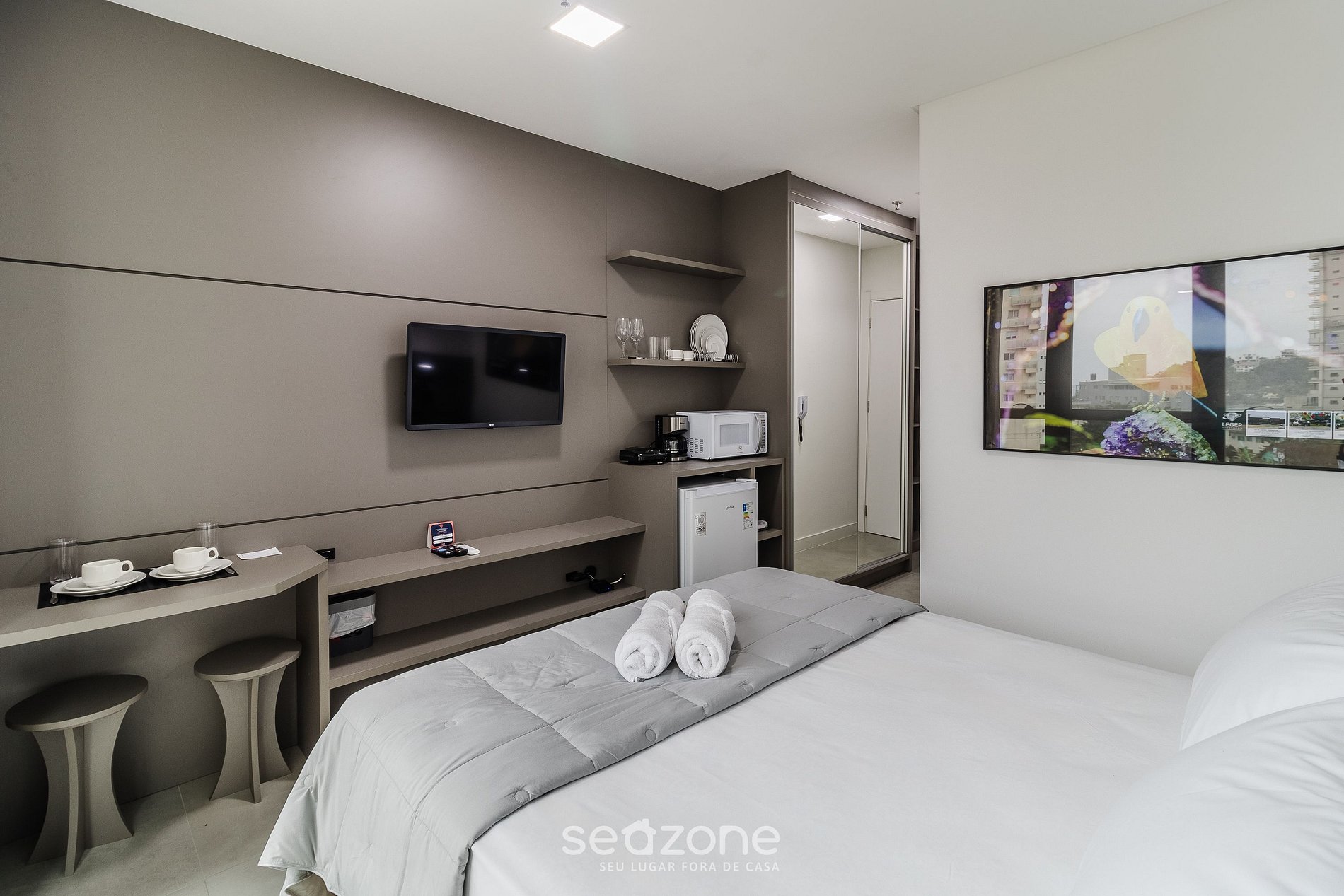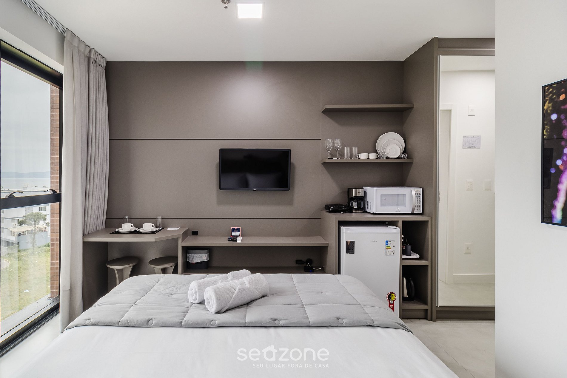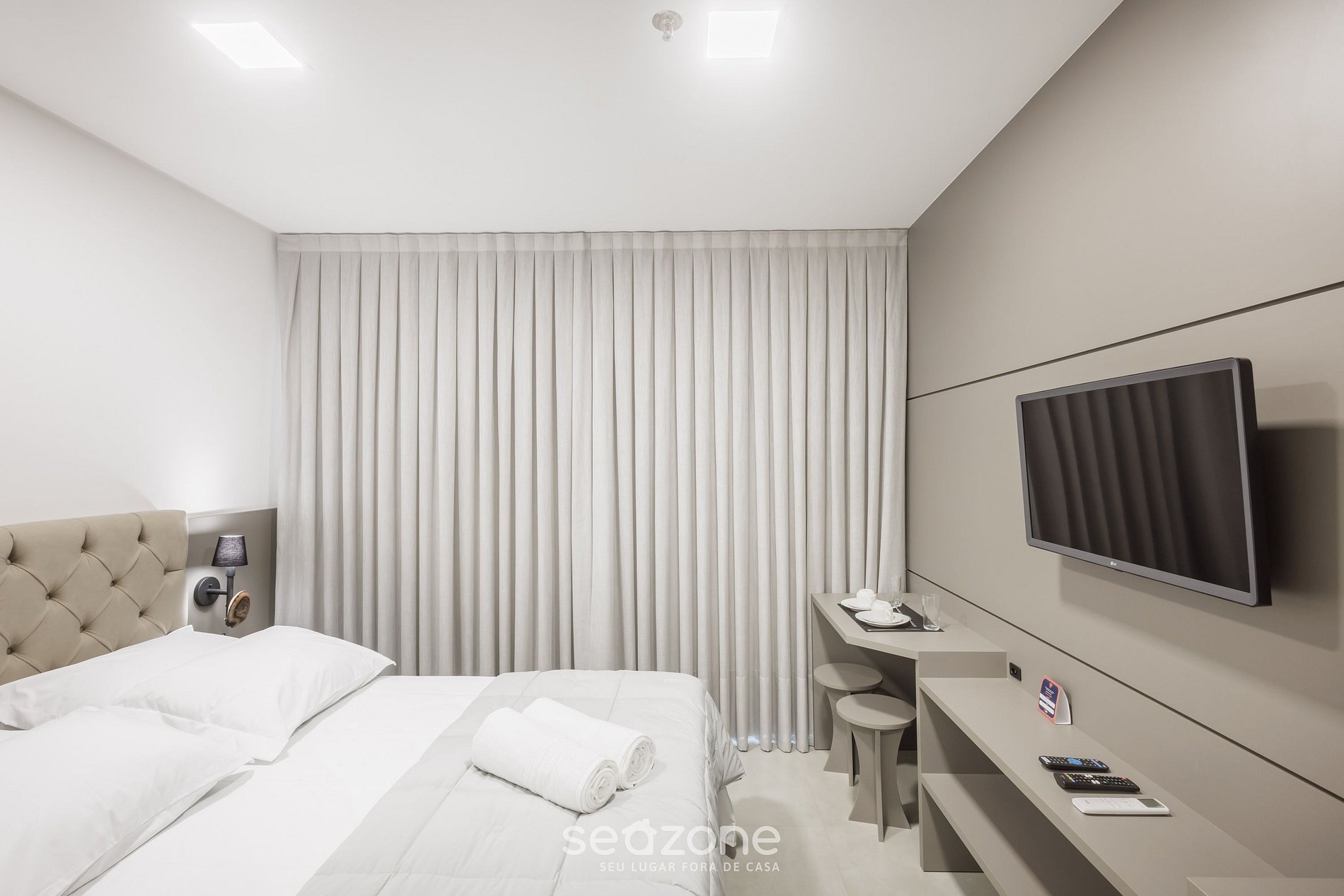 - Roupas de cama e banho de qualidade hoteleira (roupas de cama e toalhas extras são cobrados pela Seazone);