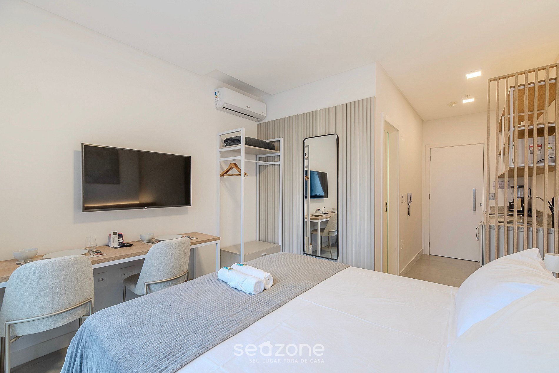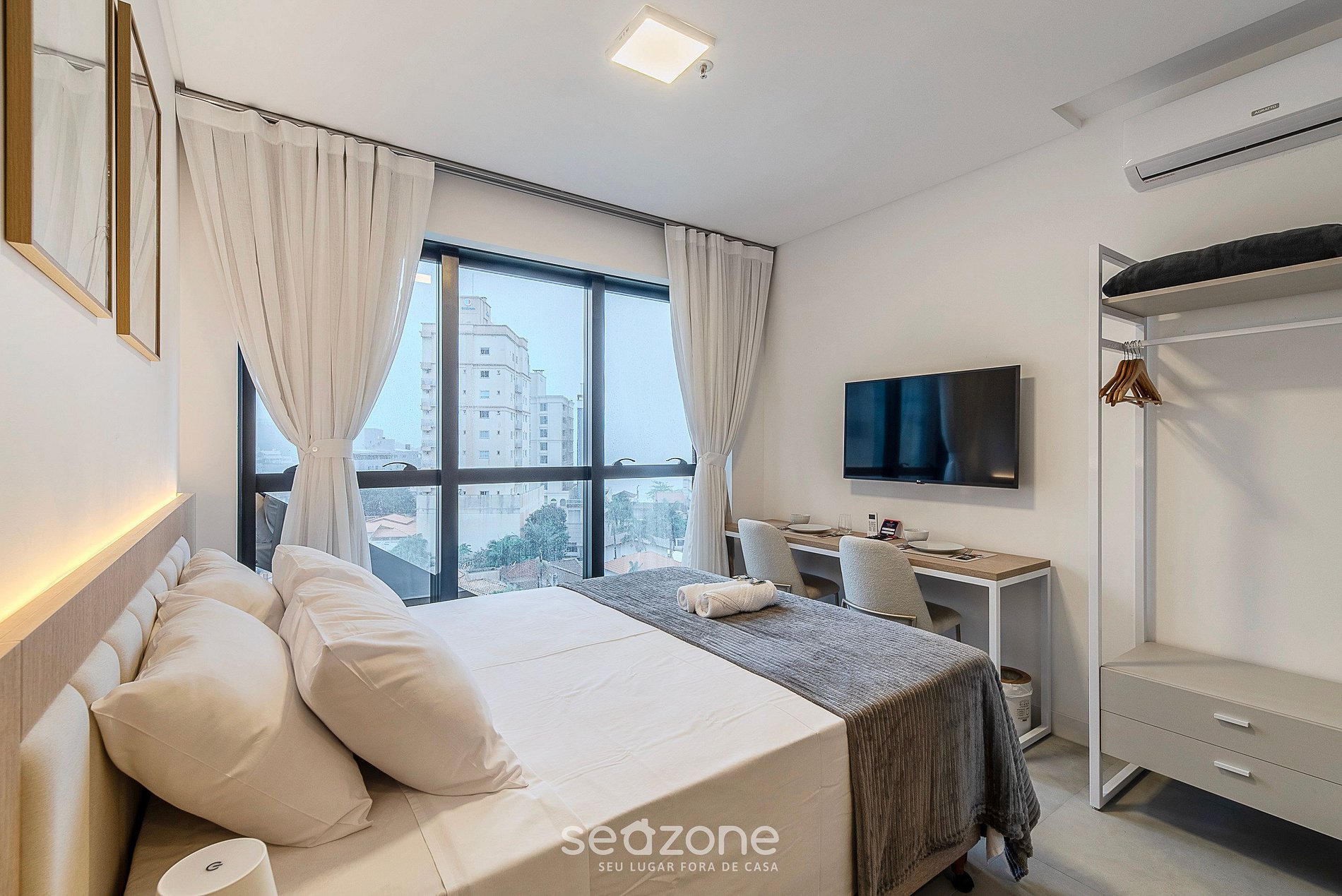 - Roupas de cama e banho de qualidade hoteleira (roupas de cama e toalhas extras são cobrados pela Seazone);