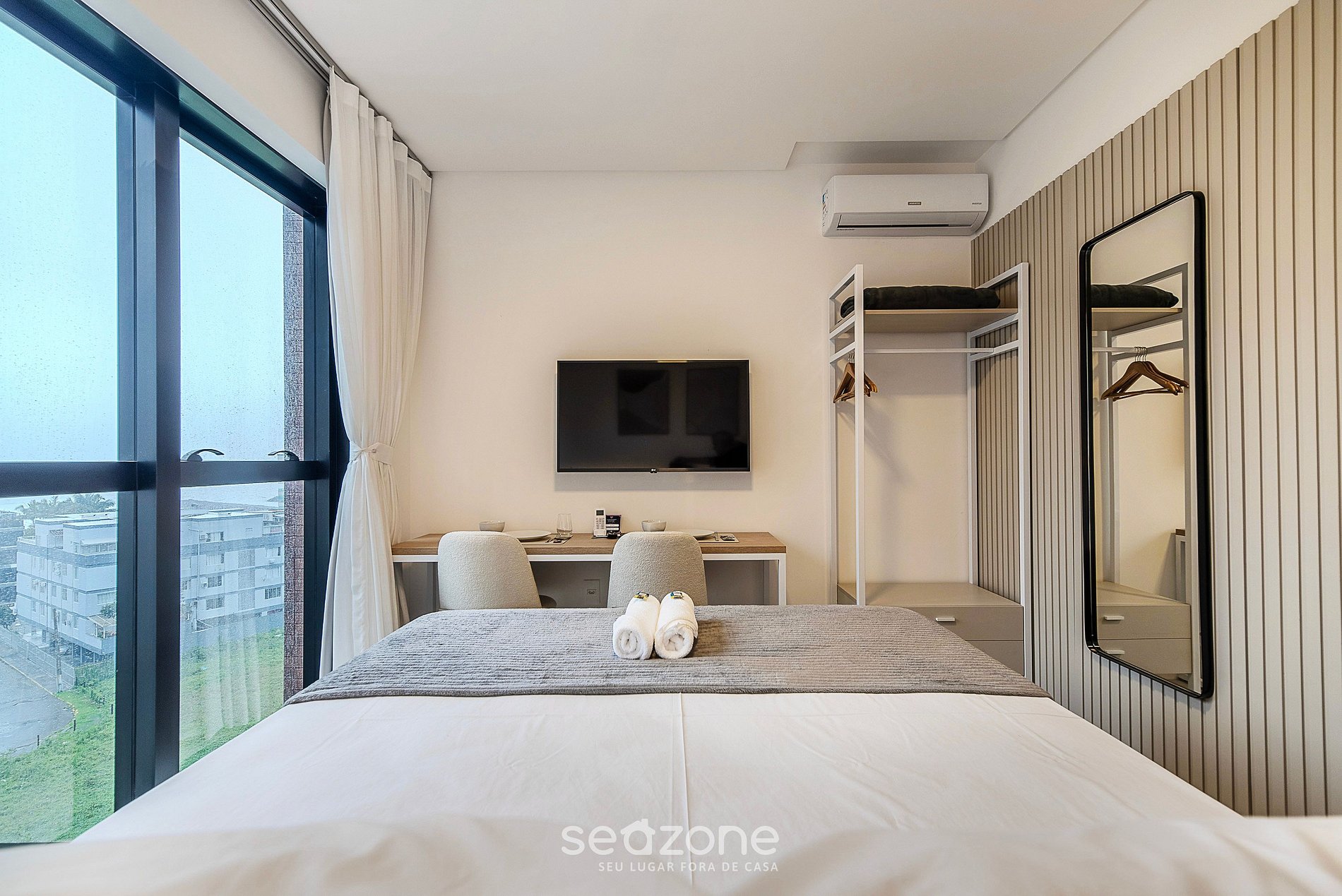 - Roupas de cama e banho de qualidade hoteleira (roupas de cama e toalhas extras são cobrados pela Seazone);