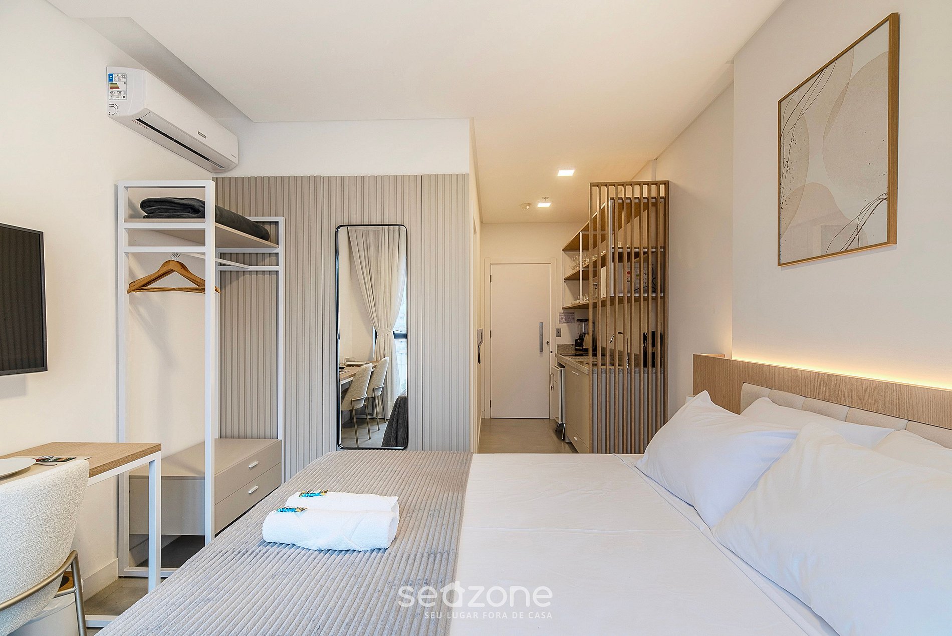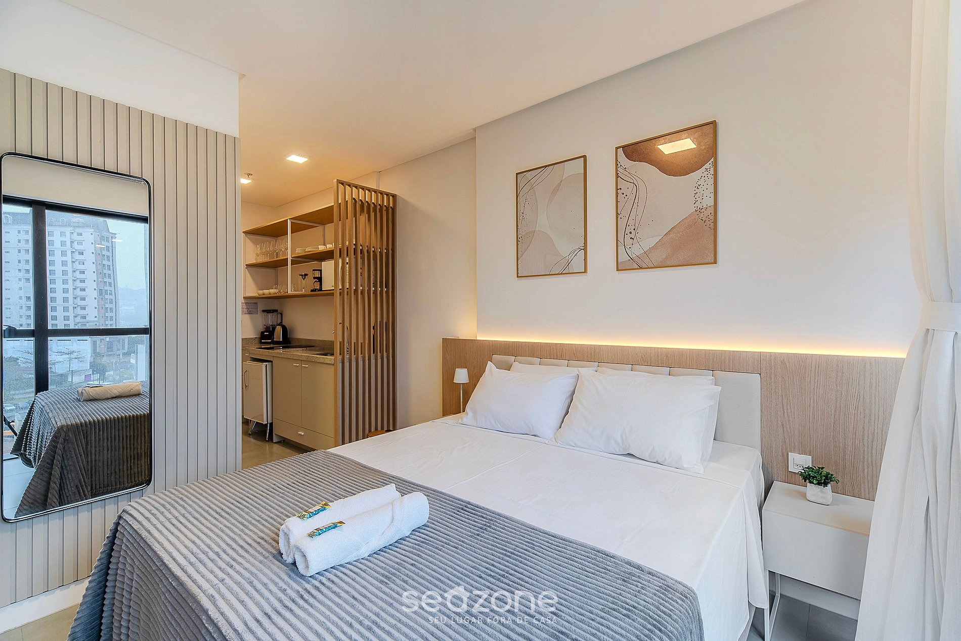- Roupas de cama e banho de qualidade hoteleira (roupas de cama e toalhas extras são cobrados pela Seazone);