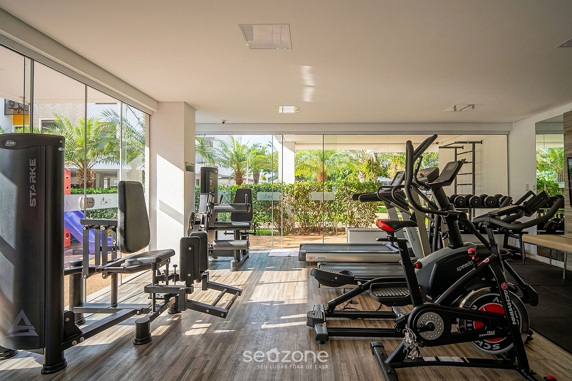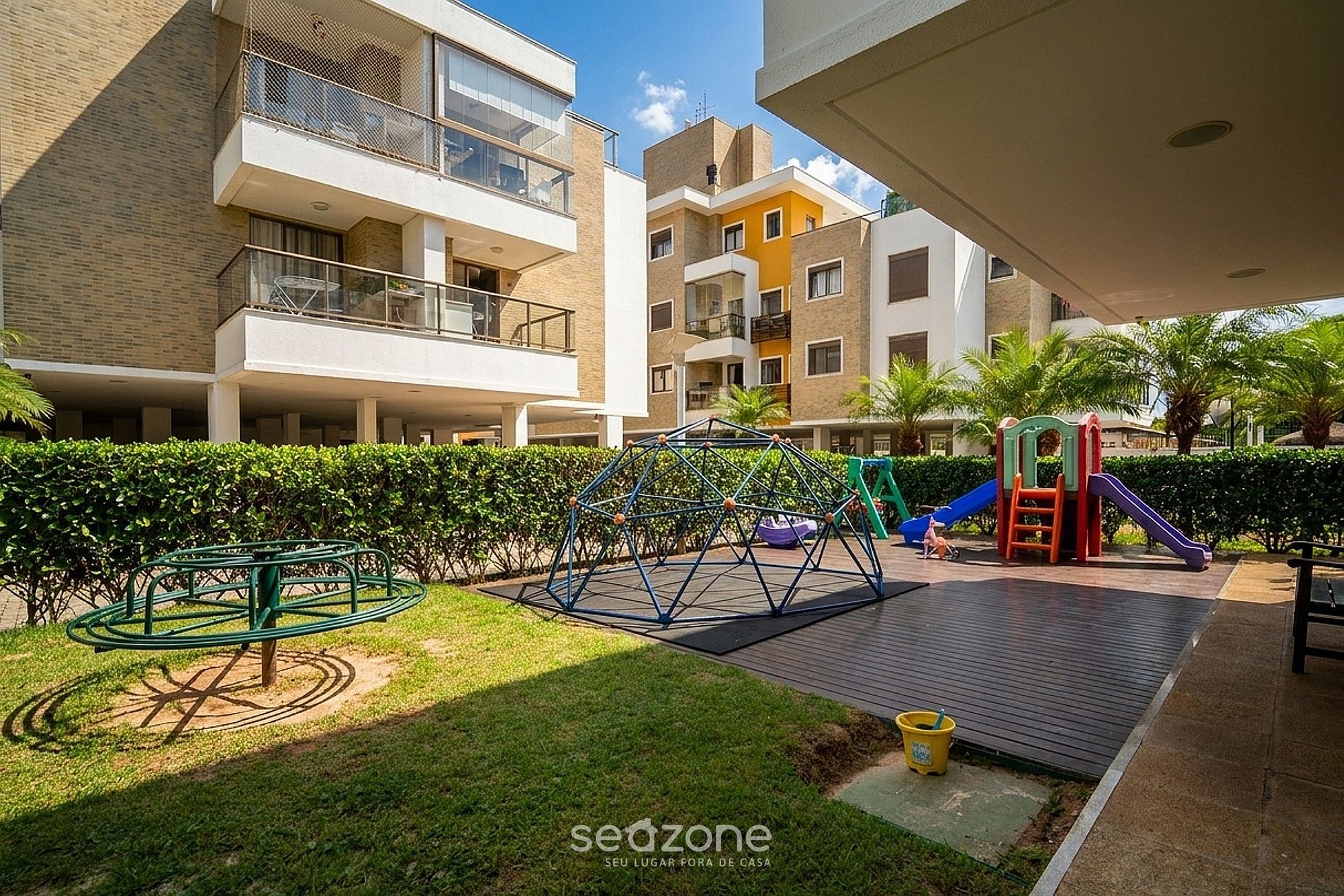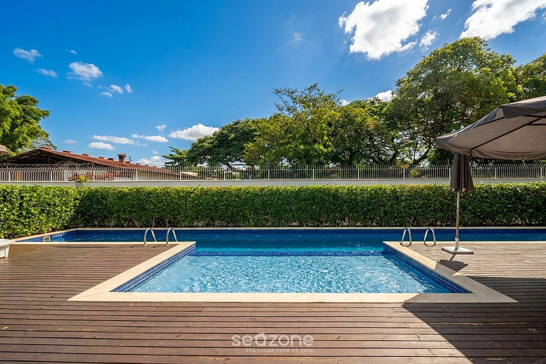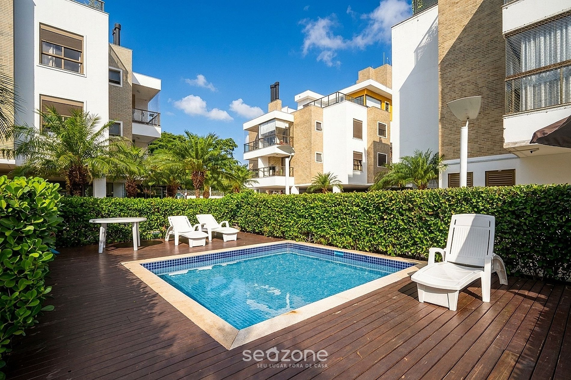 - Roupas de cama/banho e limpeza extras são solicitadas e pagas à parte, direto com a Seazone;