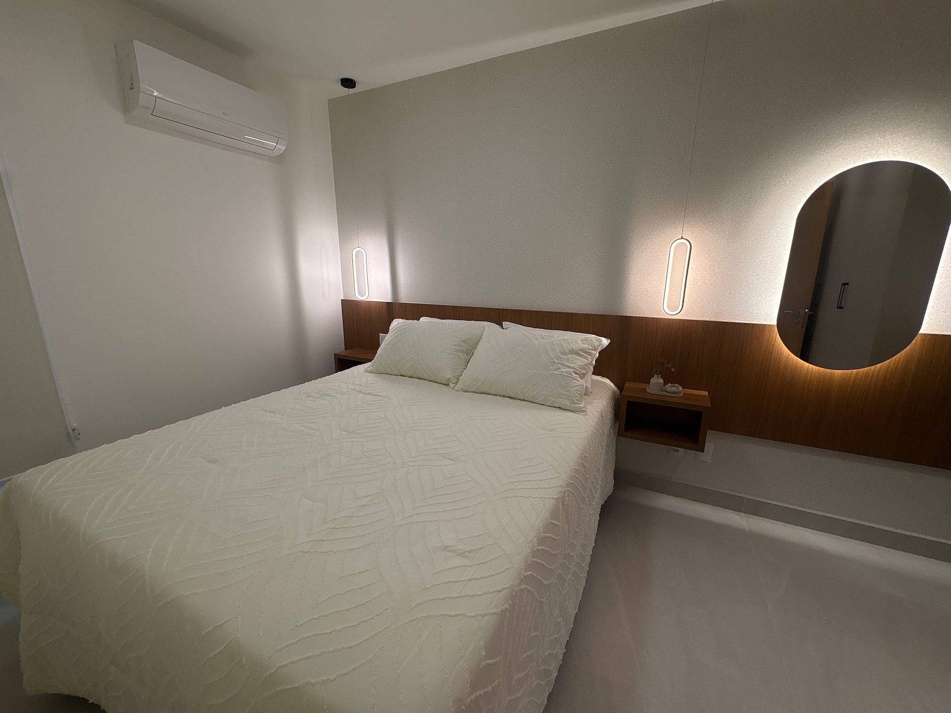 Este apartamento no Setor Bueno une praticidade e conforto com suíte Queen, ar-condicionado e Wi-Fi. O prédio oferece lazer completo com piscina aquecida, academia e sauna para seus momentos de relaxamento. Você estará a 750m do Goiânia Shopping, cercado pelos melhores restaurantes, mercados e conveniências da região.