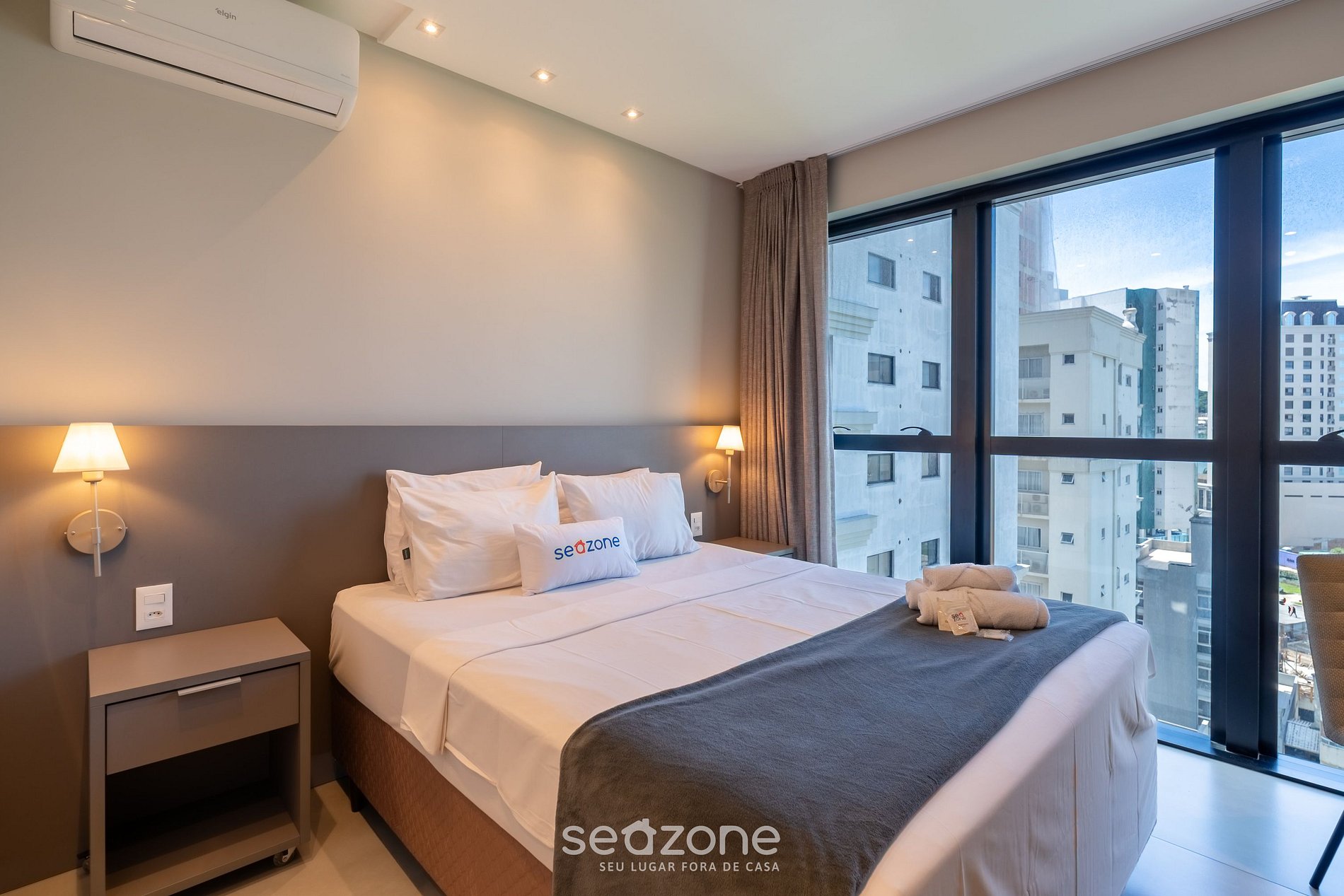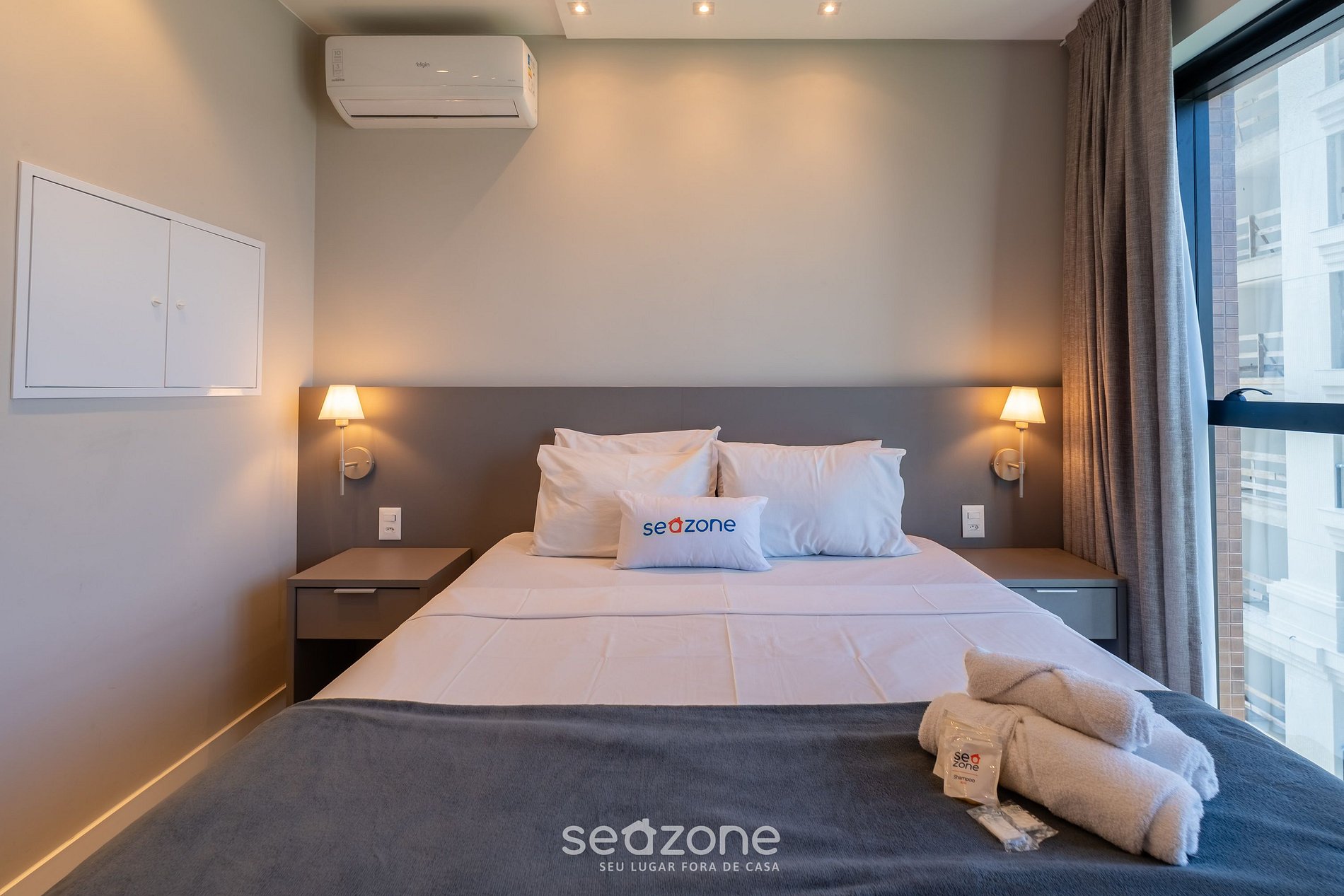 - Roupas de cama e banho de qualidade hoteleira (roupas de cama e toalhas extras são cobrados pela Seazone);