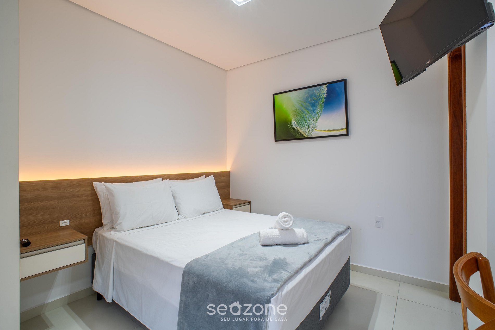 - Cama de casal, sofá, Smart TV, armário e ar-condicionado;