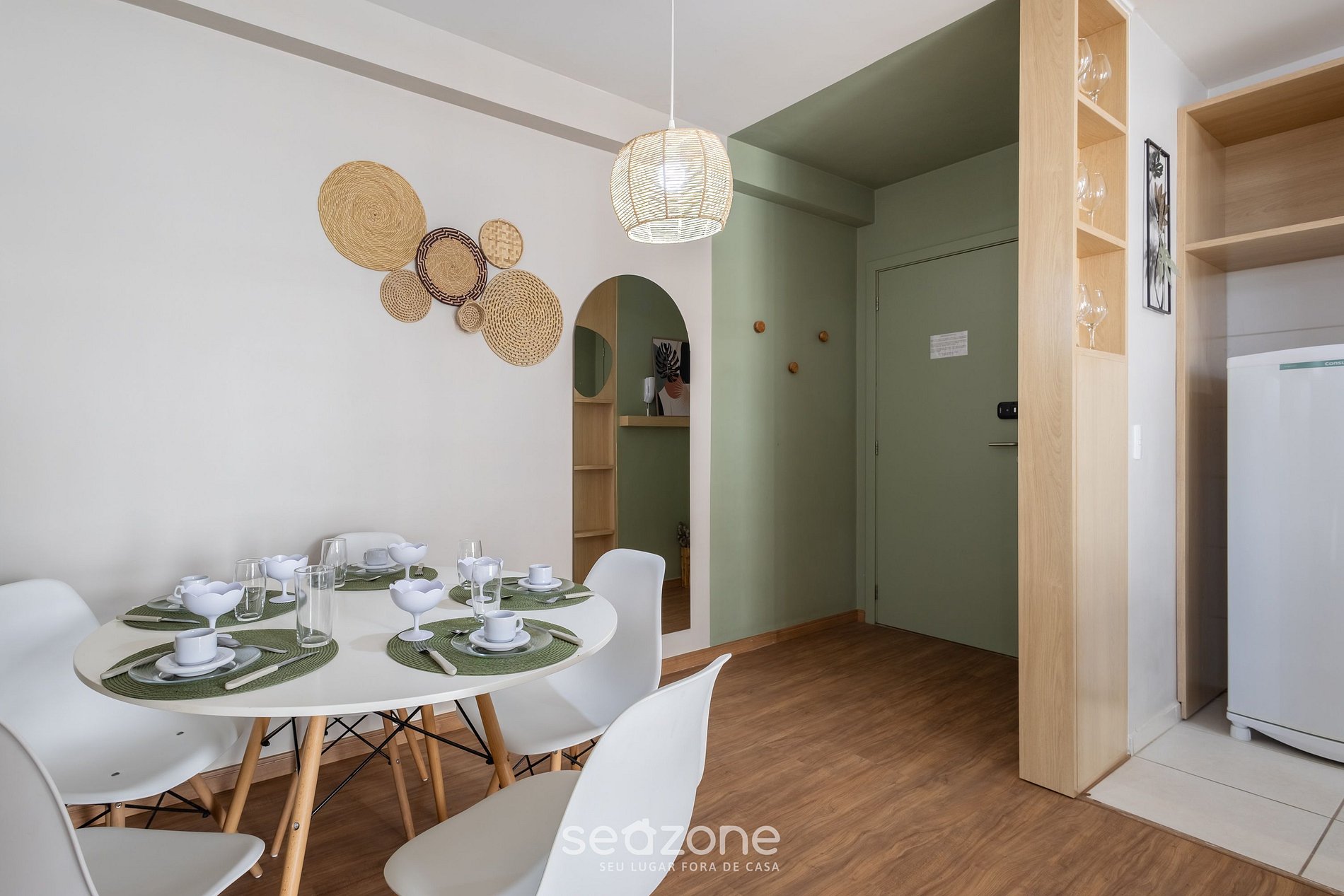 - Espaço para jantar com mesa e cadeiras;