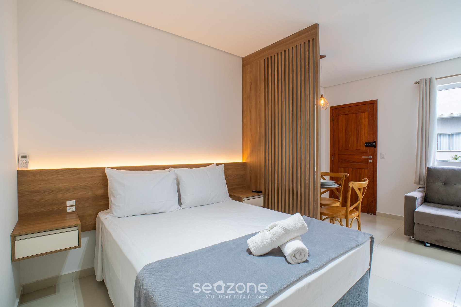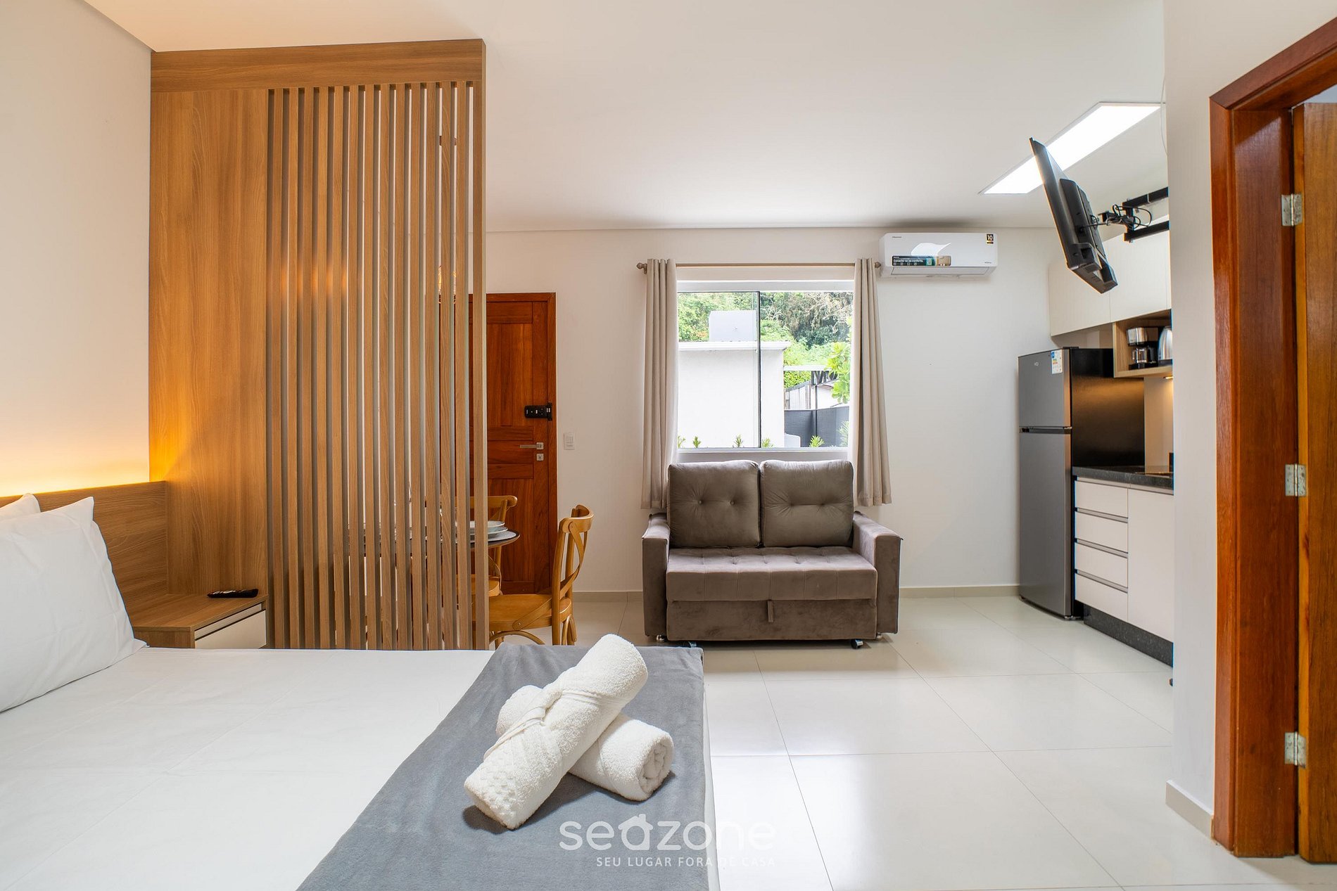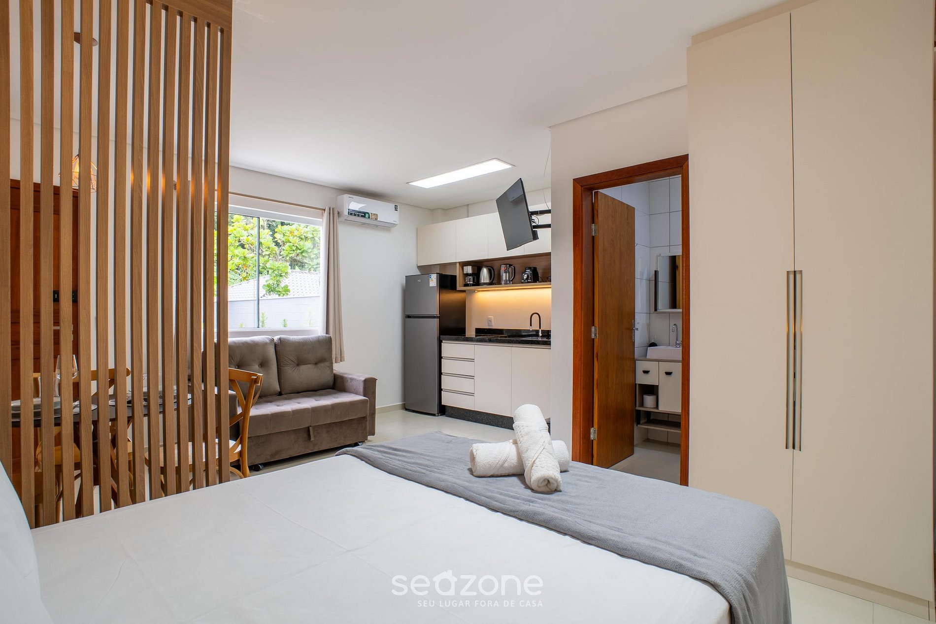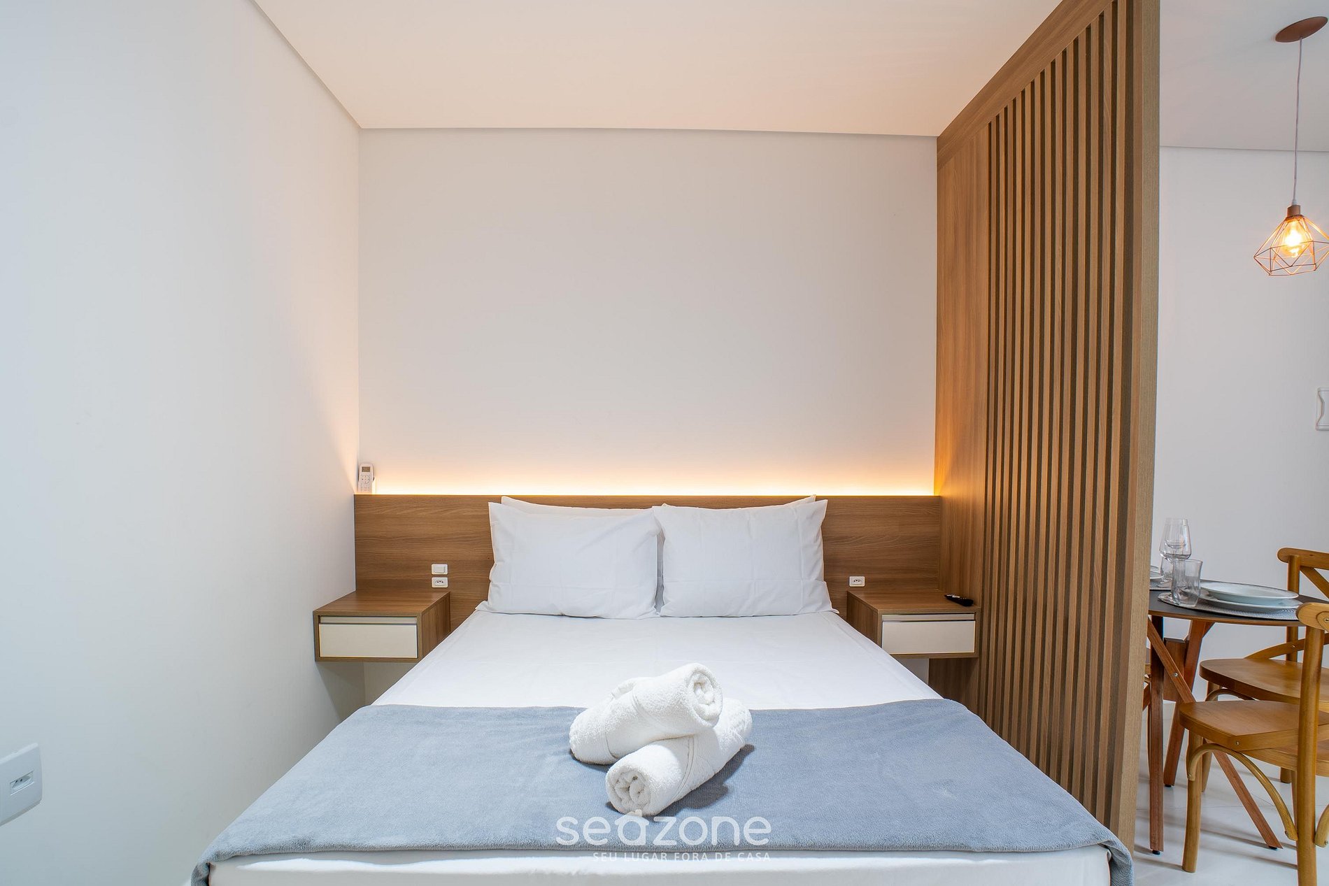 - Roupas de cama e banho de qualidade hoteleira (roupas de cama e toalhas extras são cobrados pela Seazone);