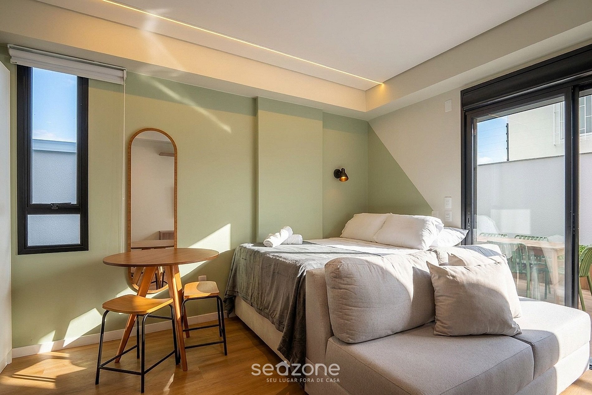 - Roupas de cama e banho de qualidade hoteleira (roupas de cama e toalhas extras são cobrados pela Seazone);