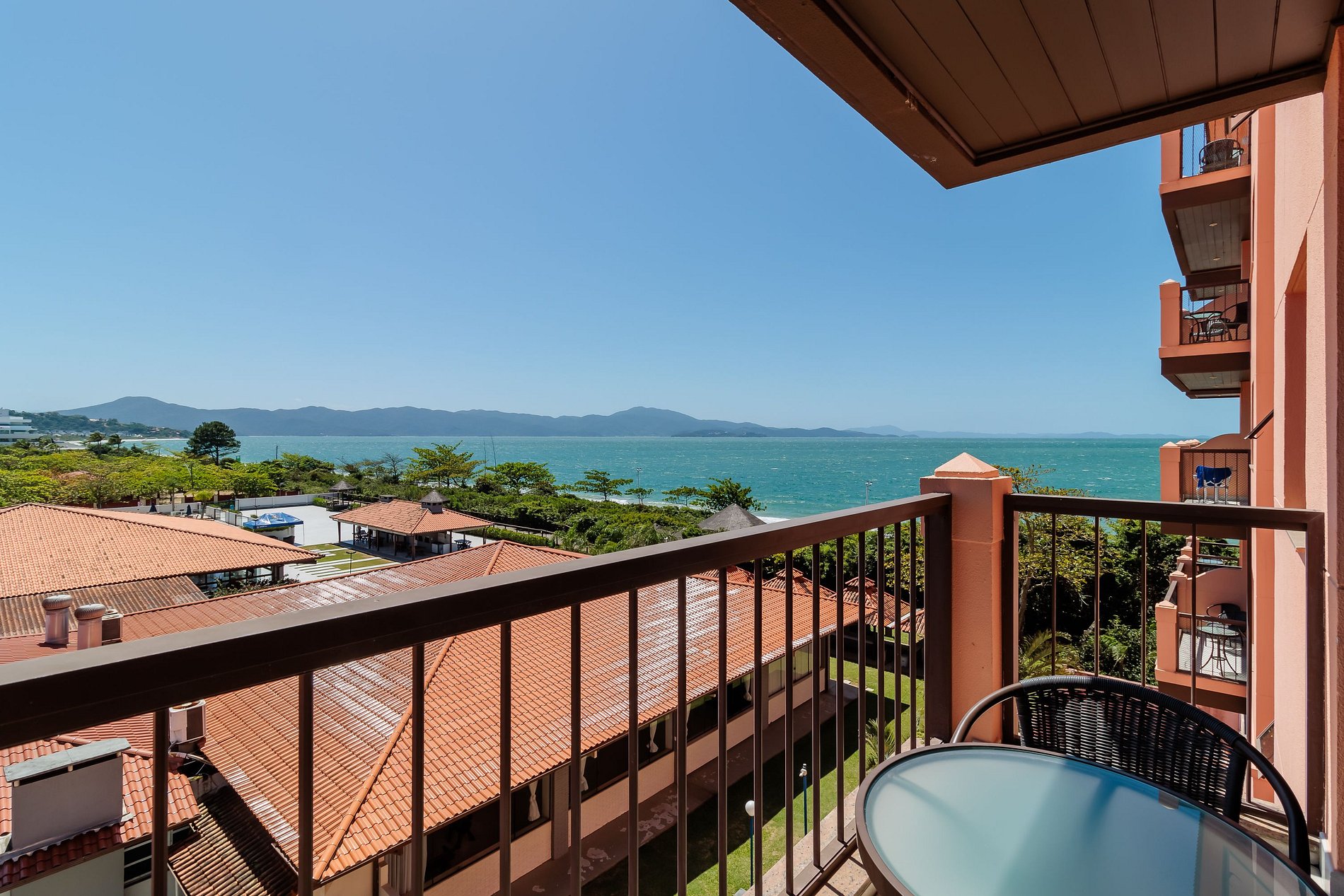 A partir da sacada, você pode curtir a brisa e a vista de um fim de tarde ou acordar e verificar se o dia está para praia ou para uma piscina climatizada.