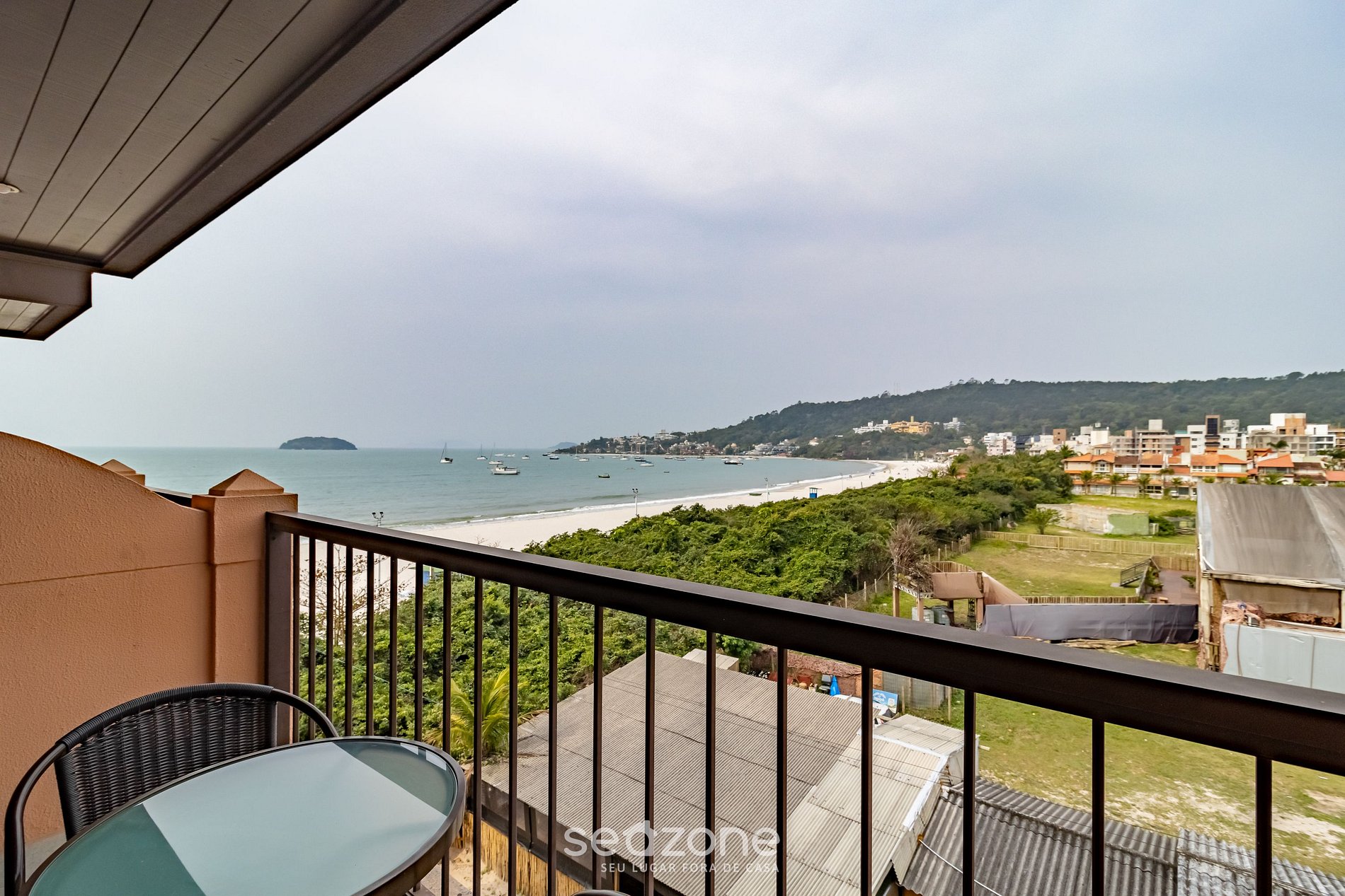 A partir da sacada, você pode curtir a brisa e a vista de um fim de tarde ou acordar e verificar se o dia está para praia ou para uma piscina climatizada.