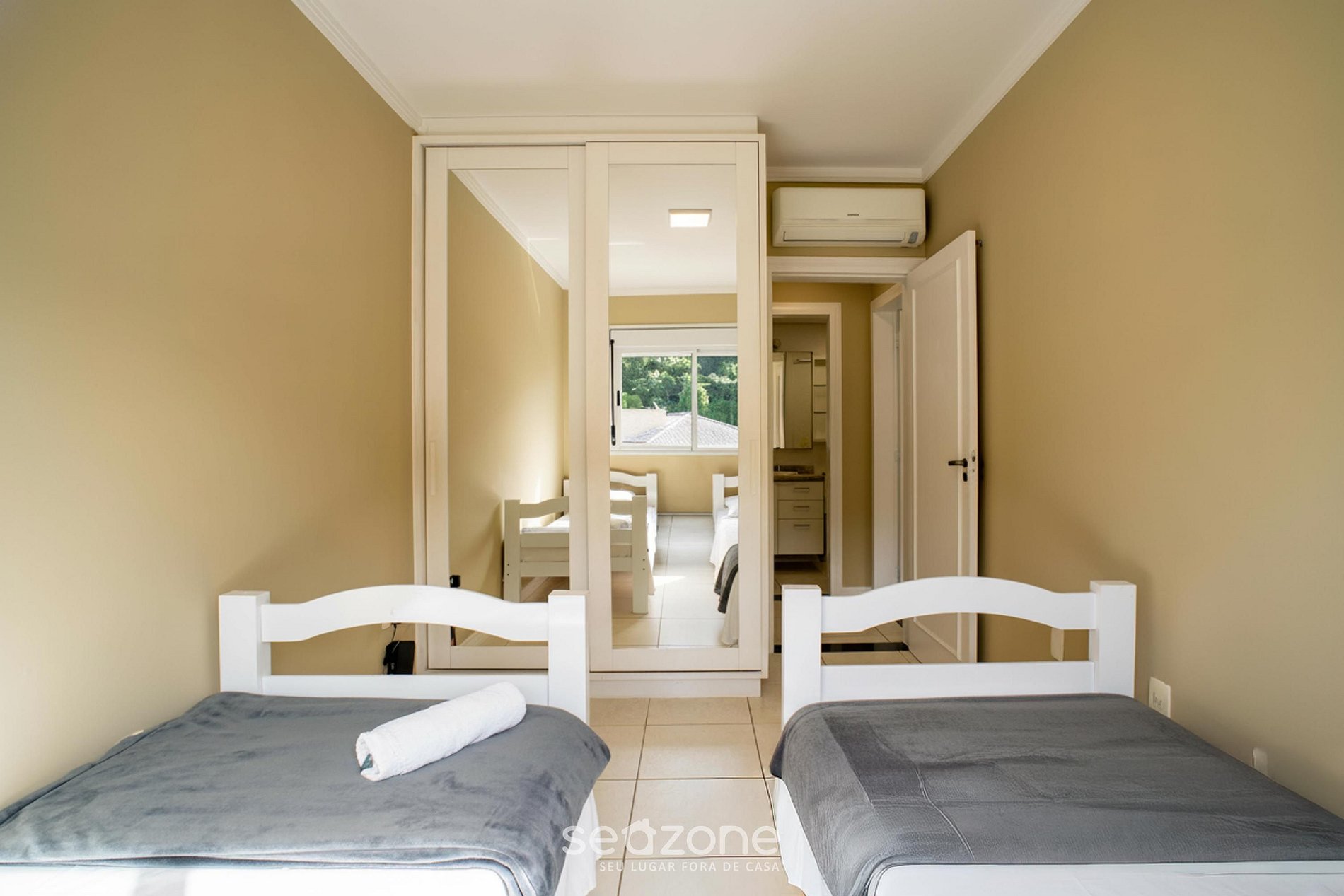 - 1 Quarto com 2 camas de solteiro, armário e ar-condicionado;