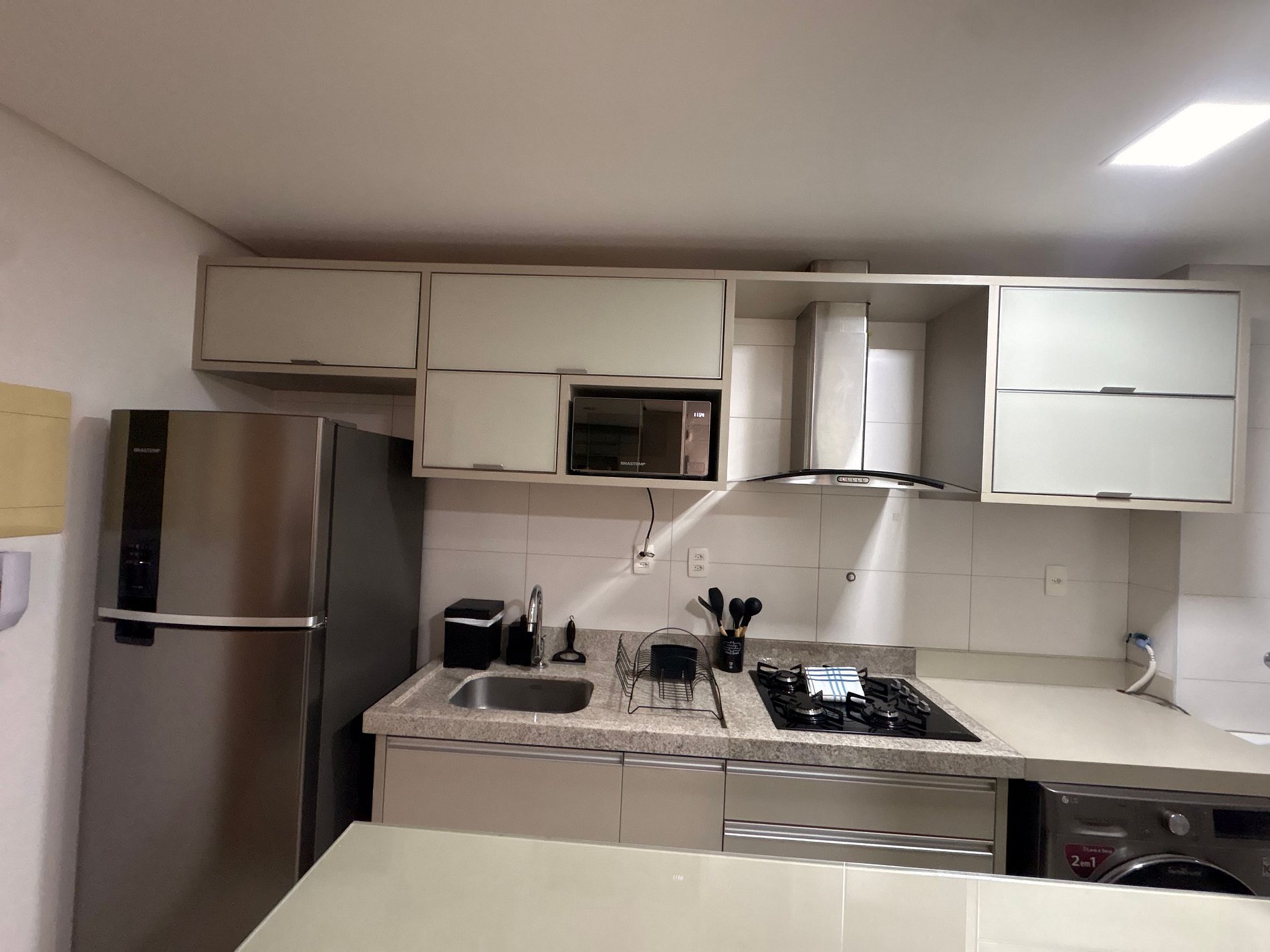 - Cozinha completa com geladeira, fogão cooktop, micro-ondas, sanduicheira, cafeteira elétrica, chaleira elétrica, liquidificador, abridor de vinho, panelas, louças e utensílios;