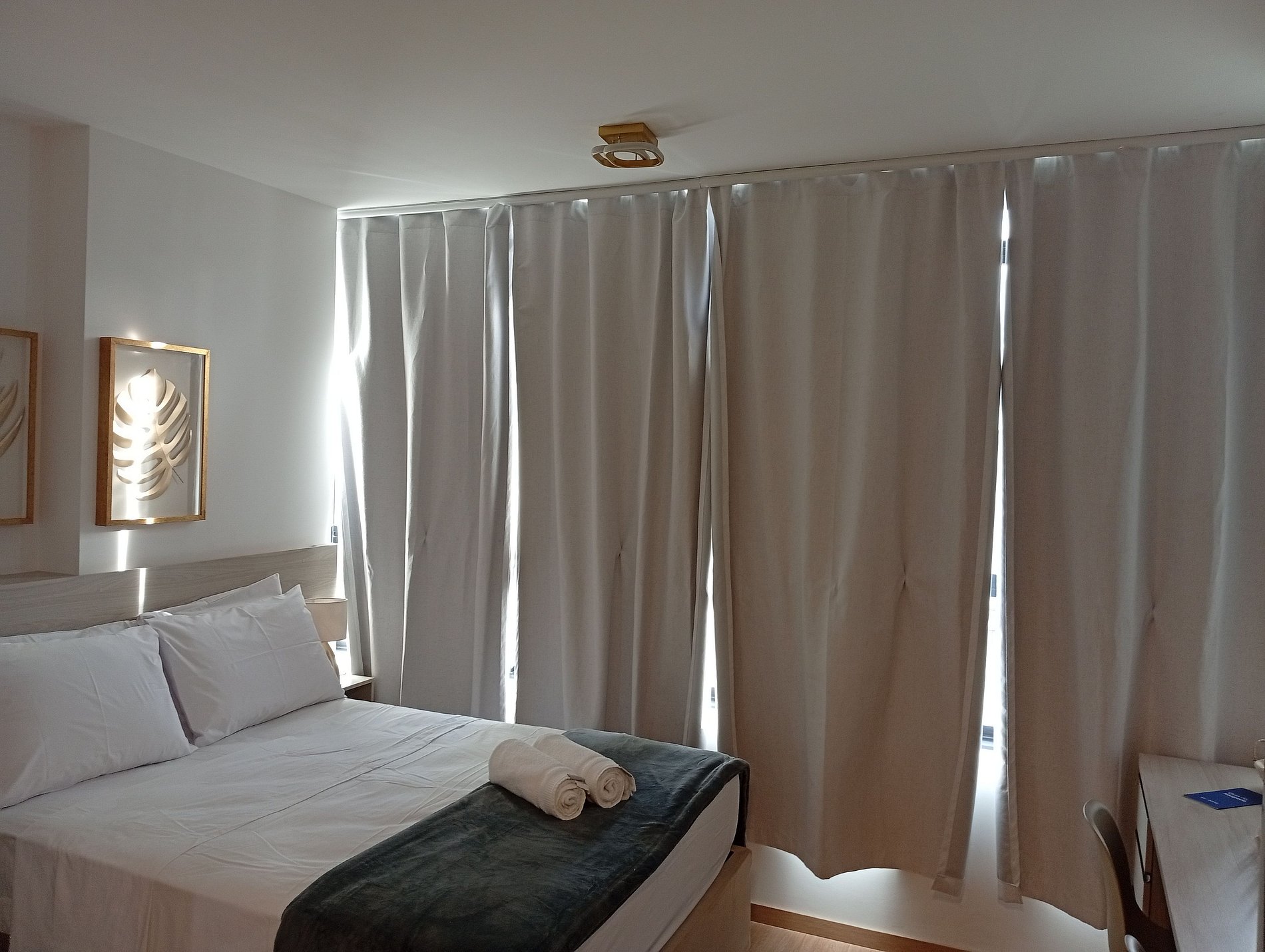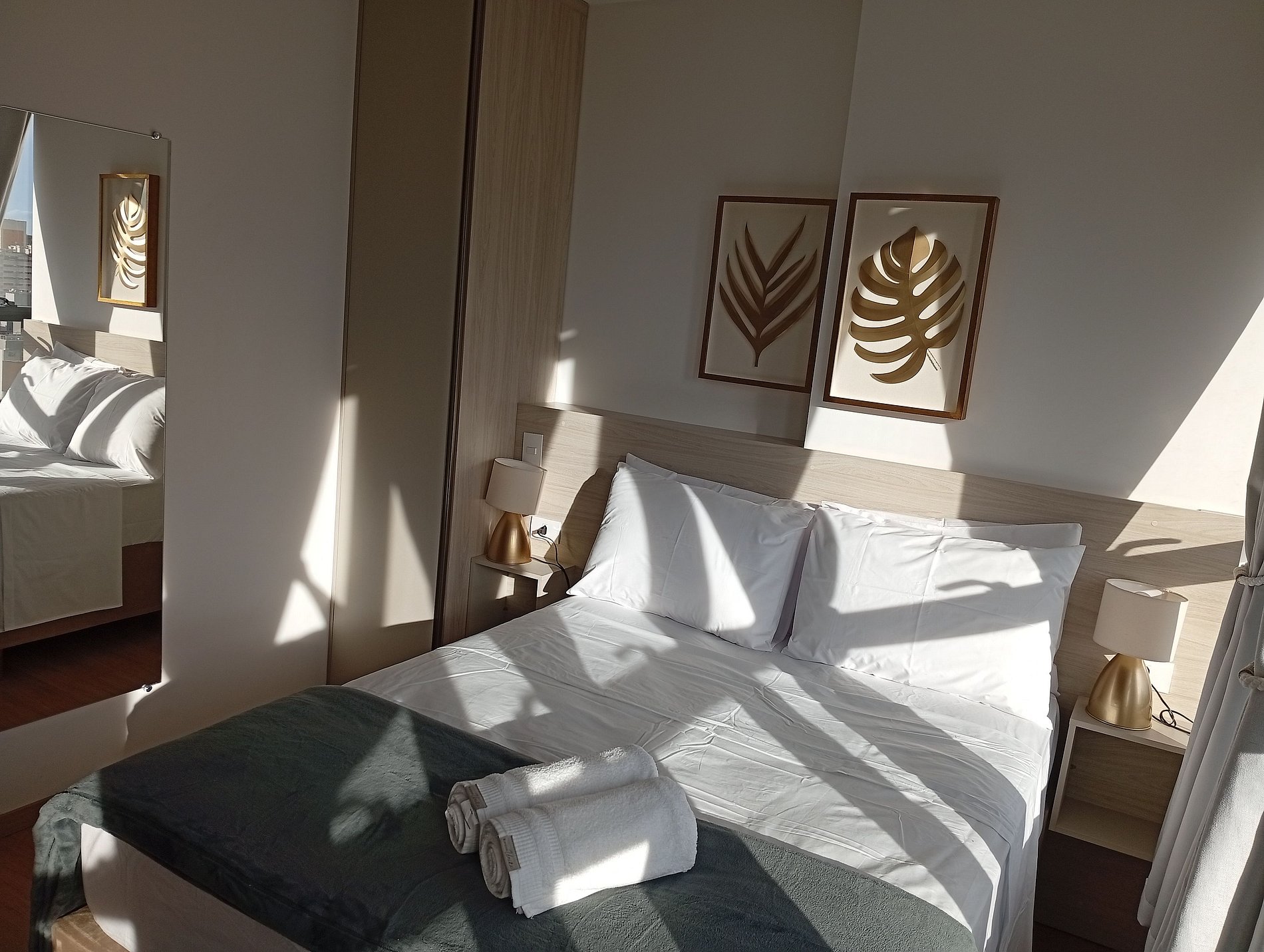 - Cama de casal, armário, smart TV e ar-condicionado;