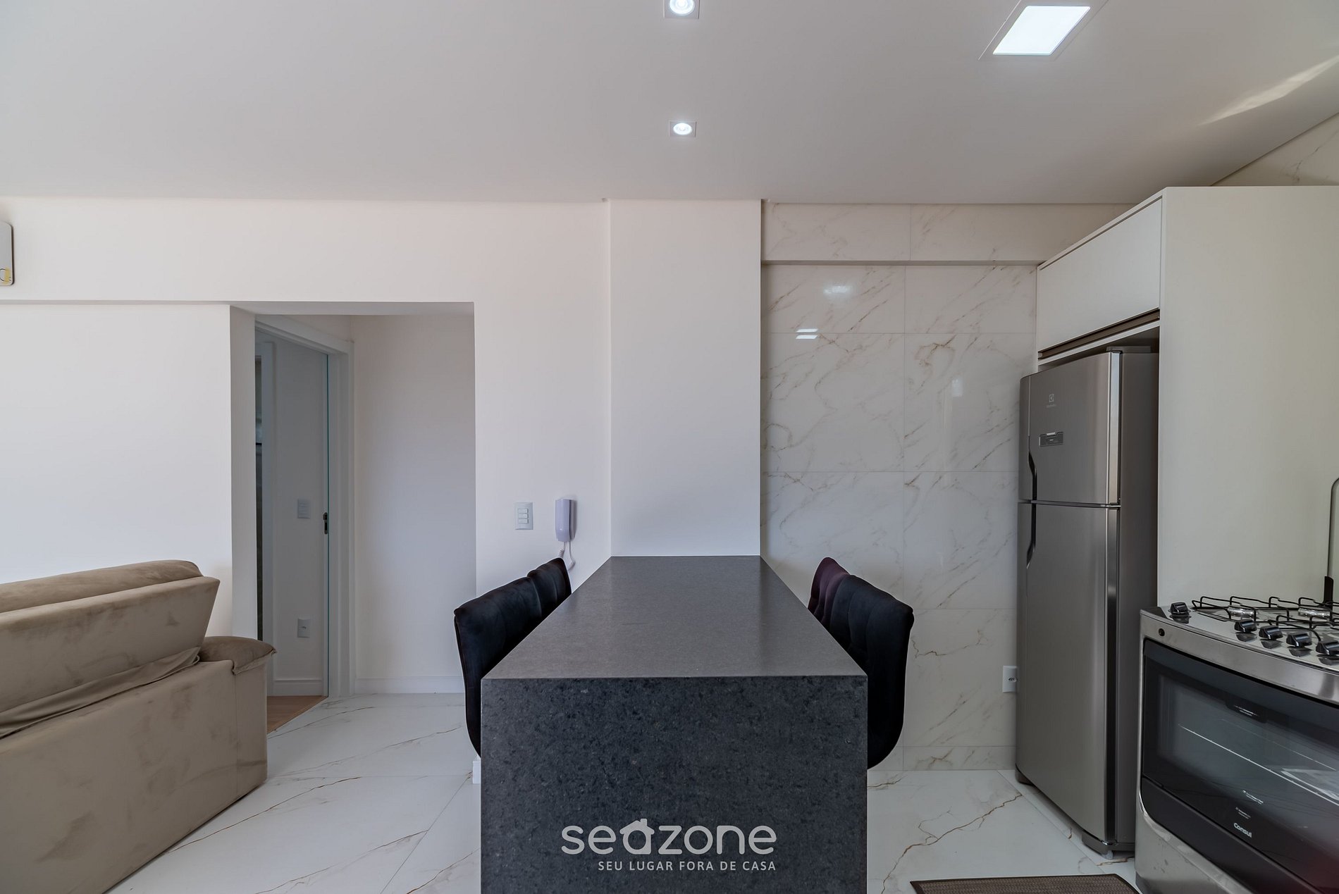 - Espaço para refeições com bancada e 4 cadeiras;