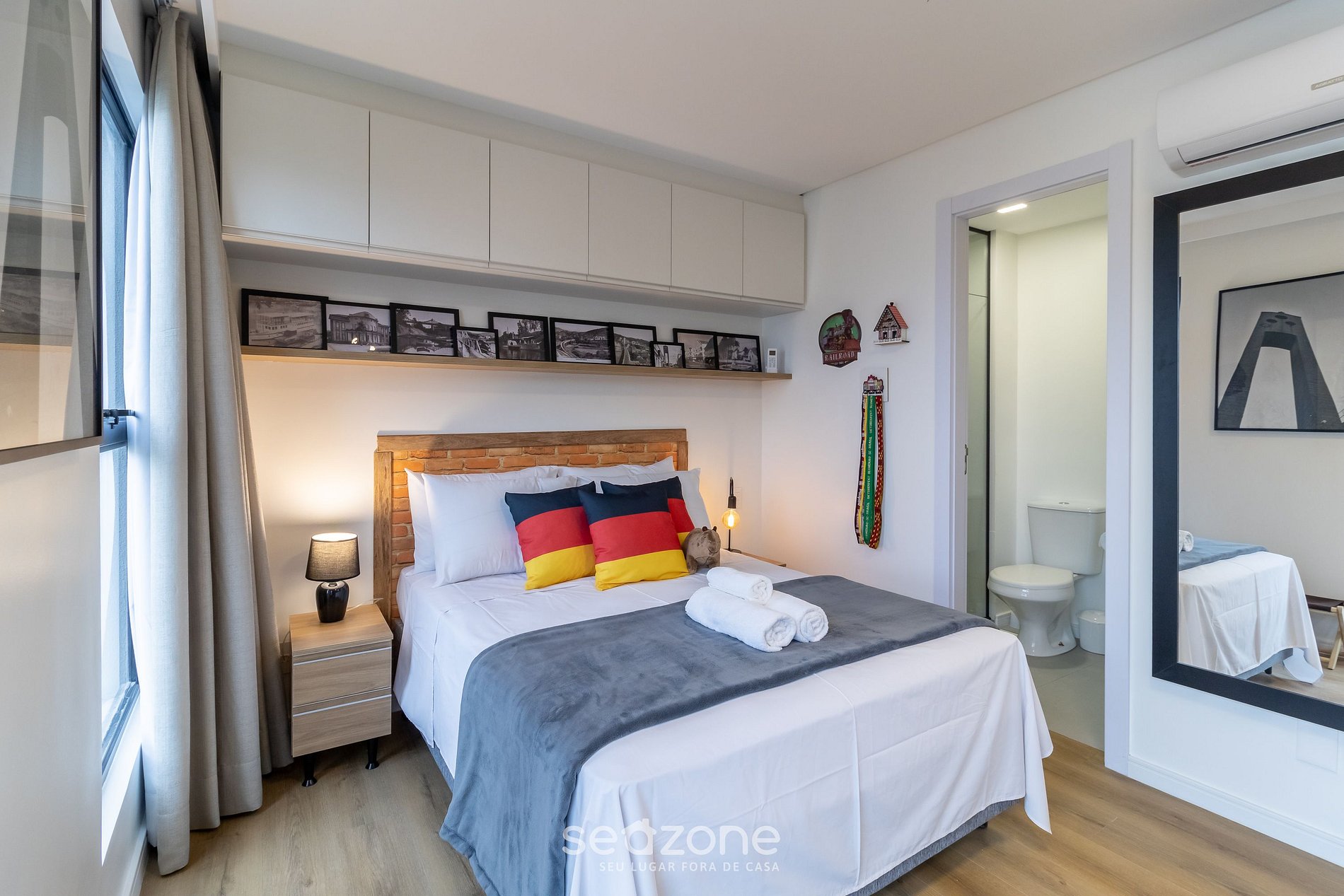 Desfrute de Blumenau/SC, em nossos aconchegantes studios! Equipados com ar-condicionado, TV, Wi-Fi, e localizado em um prédio com piscina e elevador, você estará perto de restaurantes, farmácias e mercados. Oferecemos toda a conveniência e comodidade para sua estadia. Explore as belezas e a cultura da região com conforto e praticidade!