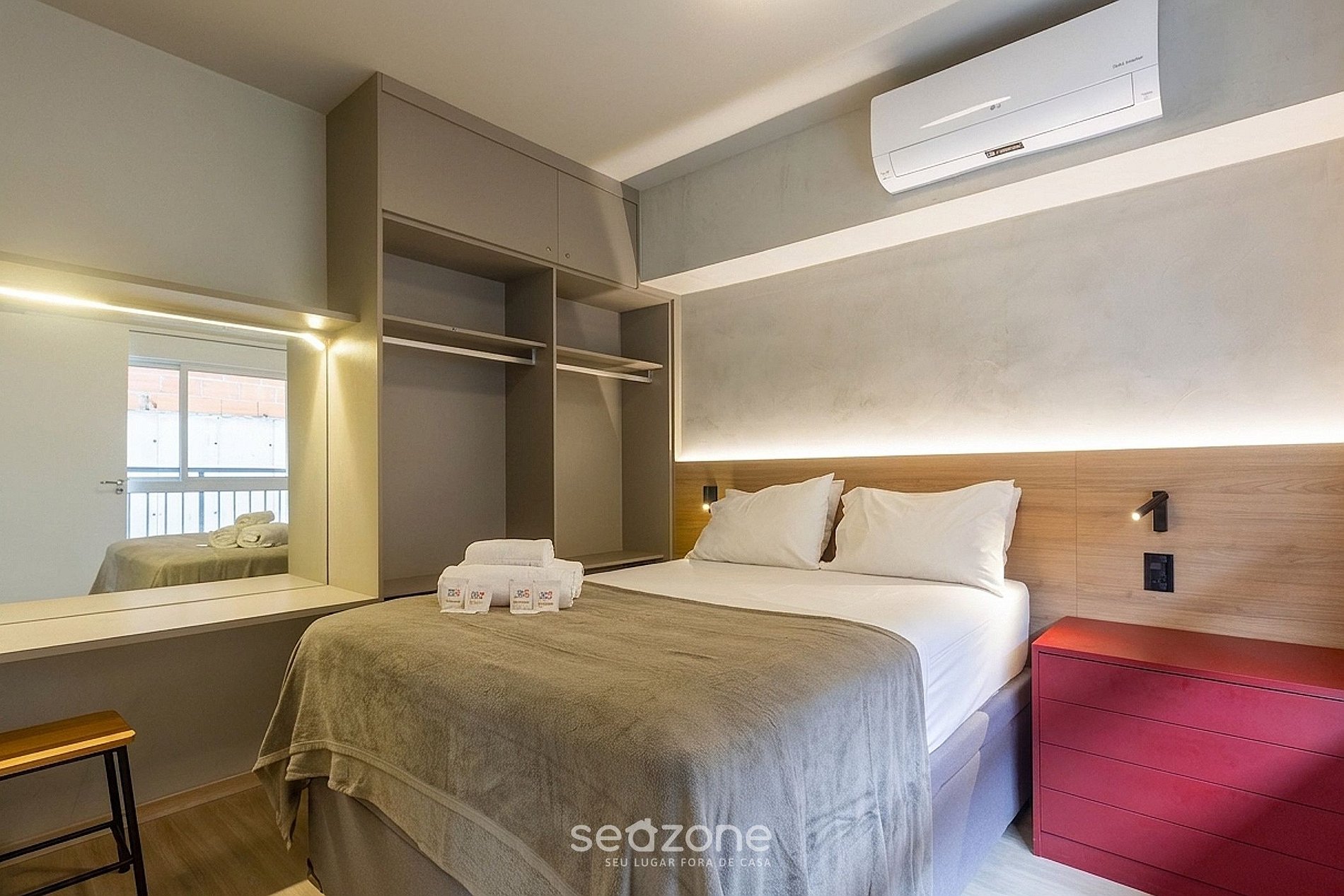 - Roupas de cama e banho de qualidade hoteleira (roupas de cama e toalhas extras são cobrados pela Seazone);